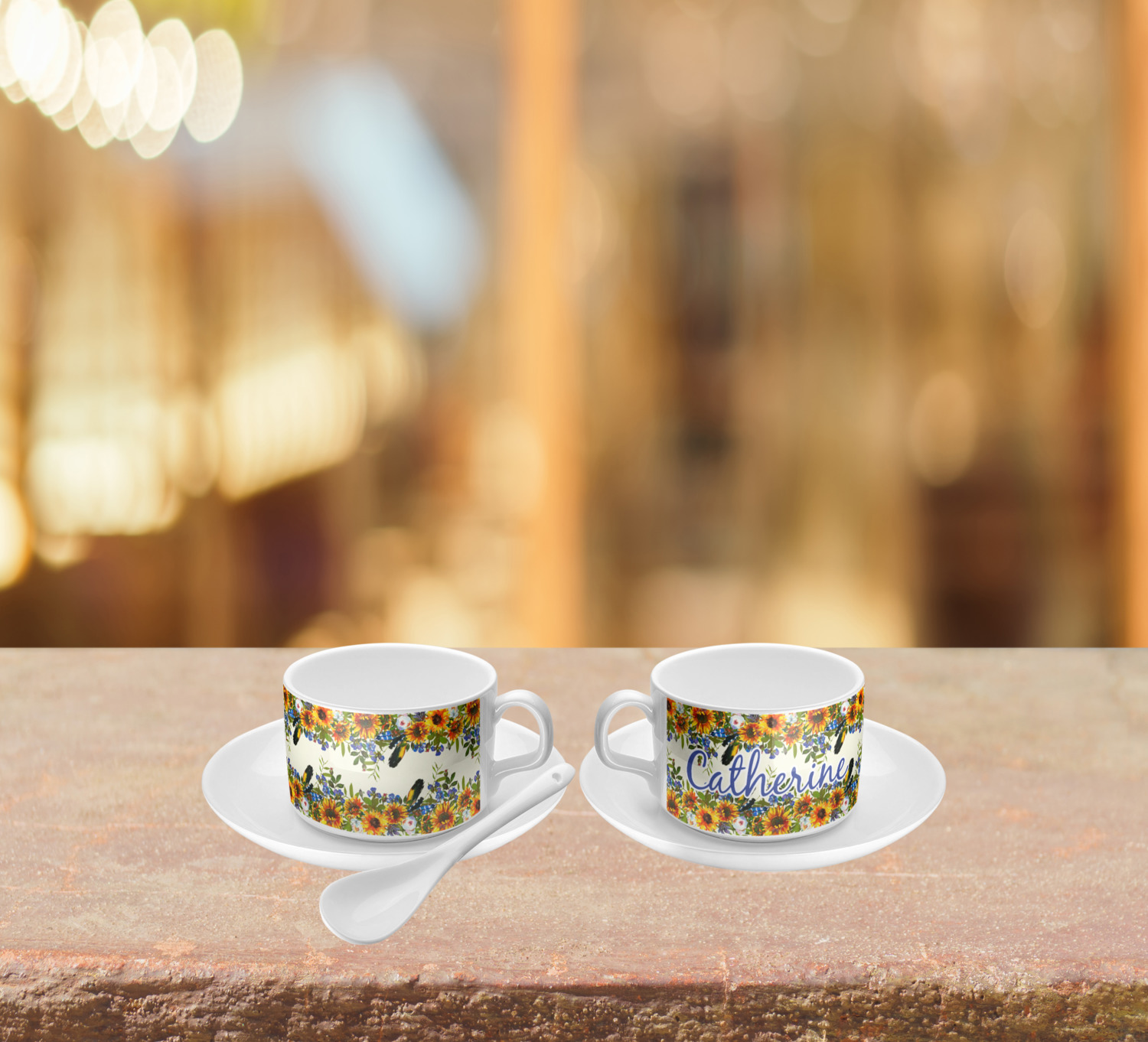 Personalize your cup with the perfect design! The white ceramic makes for a bright background to whatever personalization you decide to add to your little cup. Give your tea or coffee some class! Choose from thousands of patterns and fills in our system to fit your personality! Change whatever elements you like from the text to the ribbons to the graphics.