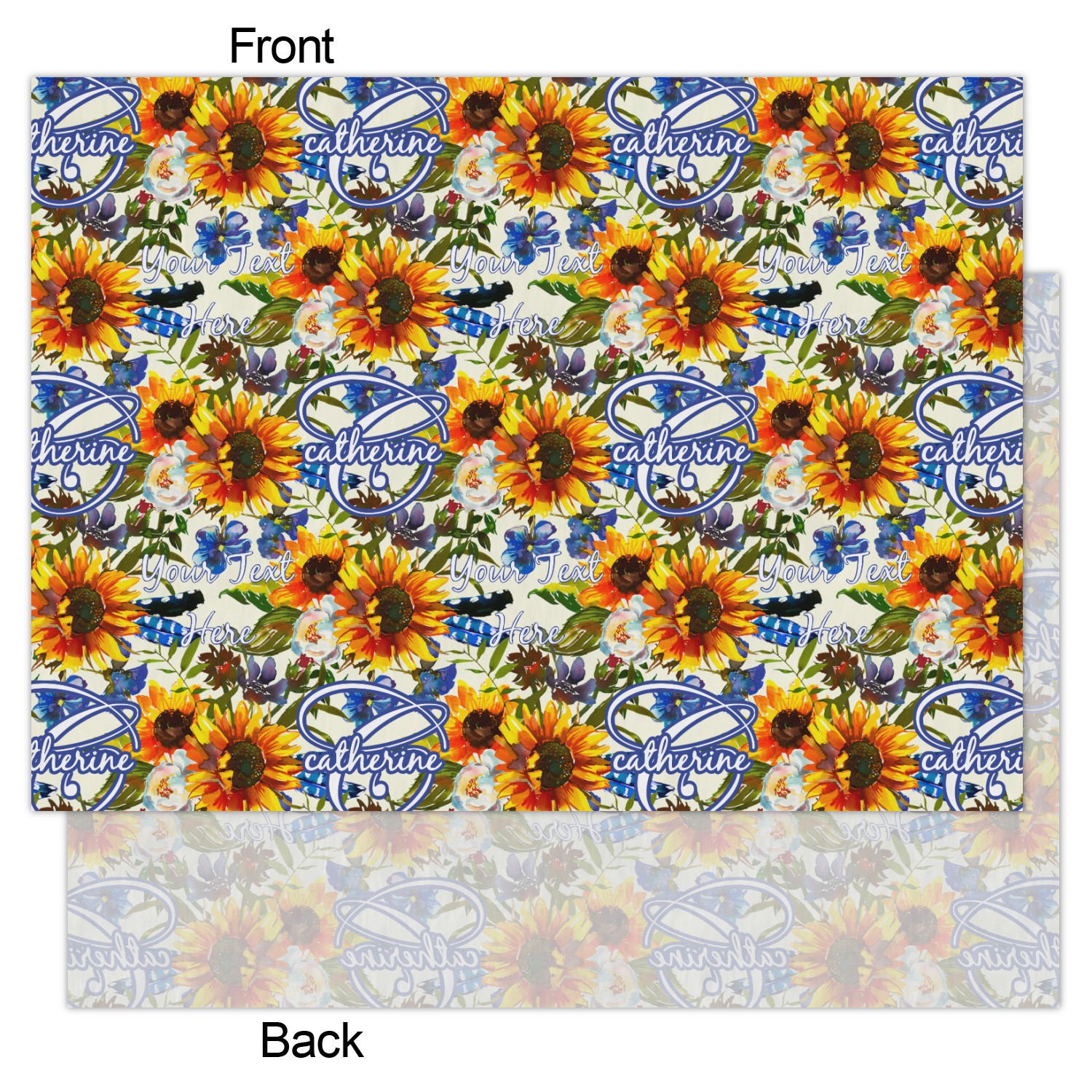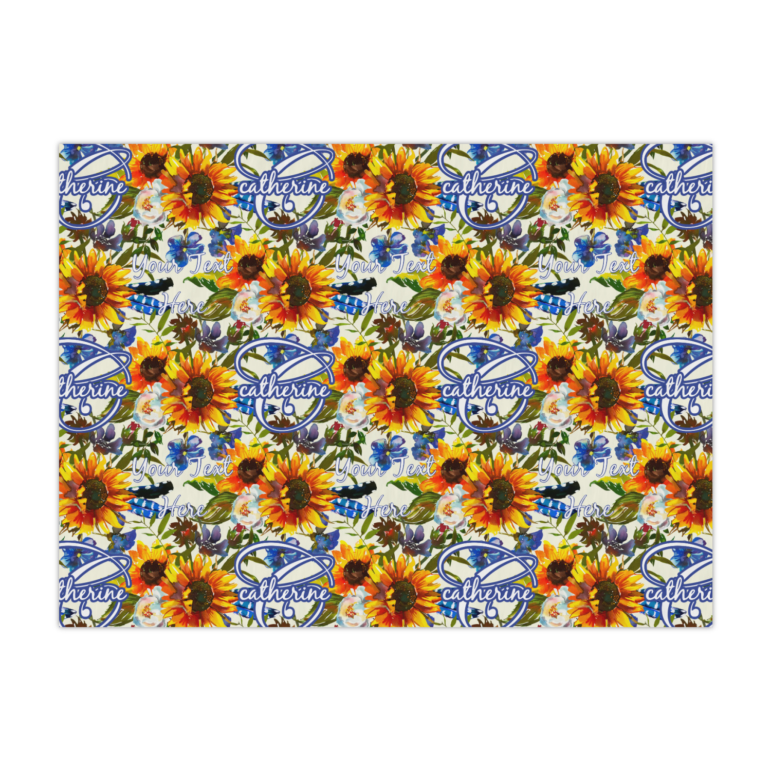 This sunflowers design template is simply beautiful. We chose to personalize it with a name & initial for the main design. We used the blue from the flower in the design and a really pale yellow background.