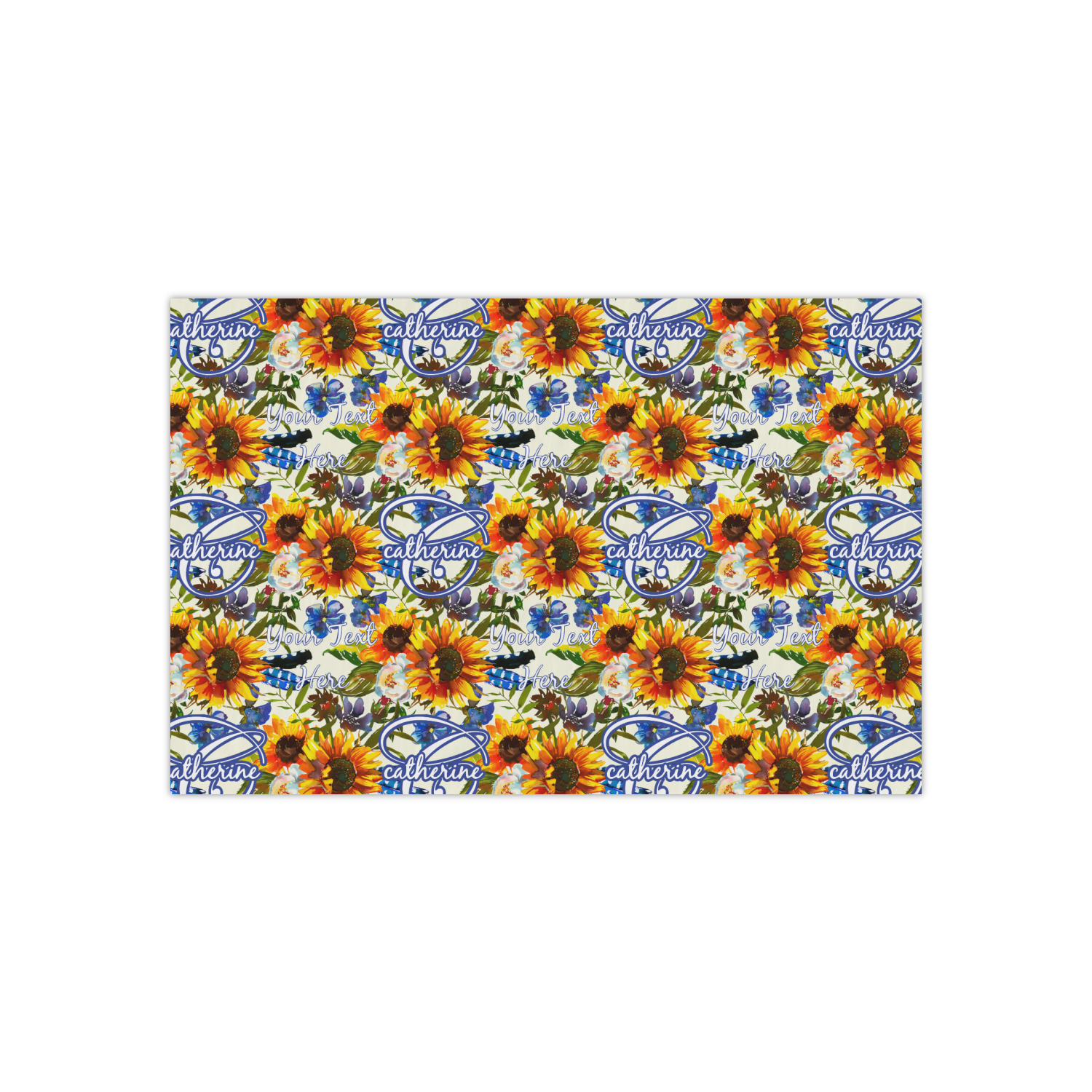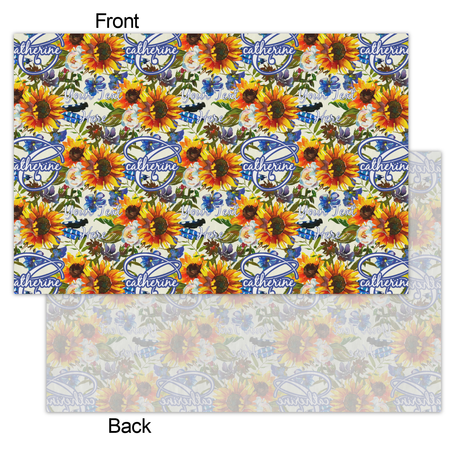 This sunflowers design template is simply beautiful. We chose to personalize it with a name & initial for the main design. We used the blue from the flower in the design and a really pale yellow background.