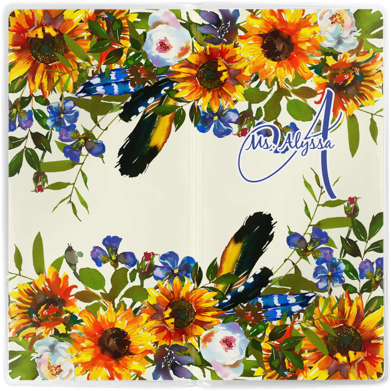 This sunflowers design template is simply beautiful. We chose to personalize it with a name & initial for the main design. We used the blue from the flower in the design and a really pale yellow background.