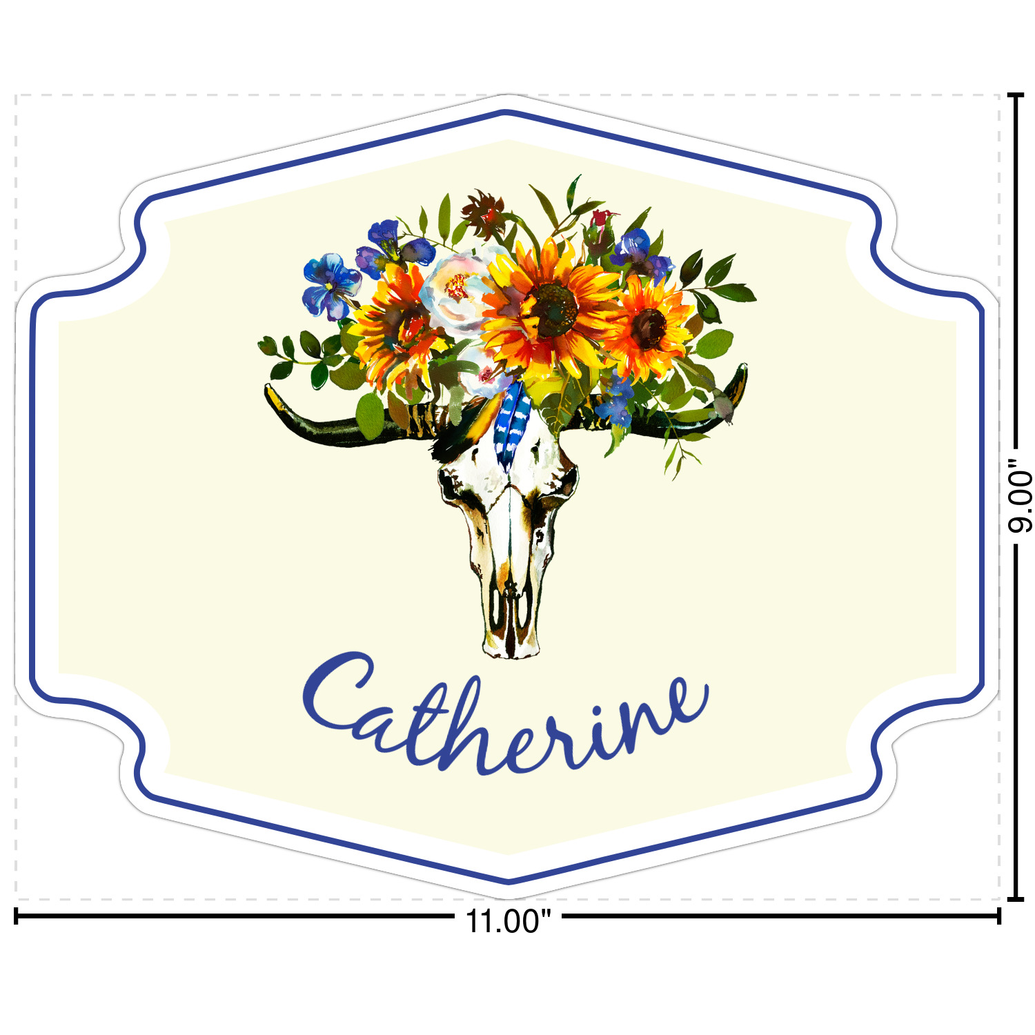 This sunflowers design template is simply beautiful. We chose to personalize it with a name & initial for the main design. We used the blue from the flower in the design and a really pale yellow background.