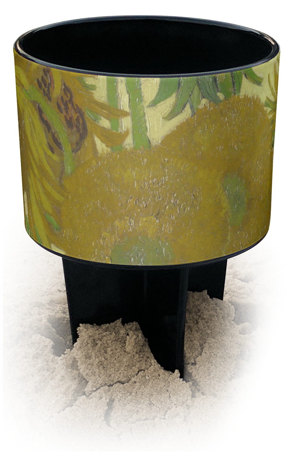 This cup holder has a large stake at its bottom that anchors it to the sand or ground below, while the cup holder rests above the stake. The entire drink holder is made of durable plastic and displays your customization around the cup holder portion. We sell these personalized beach spikers in two different colors: black and white.