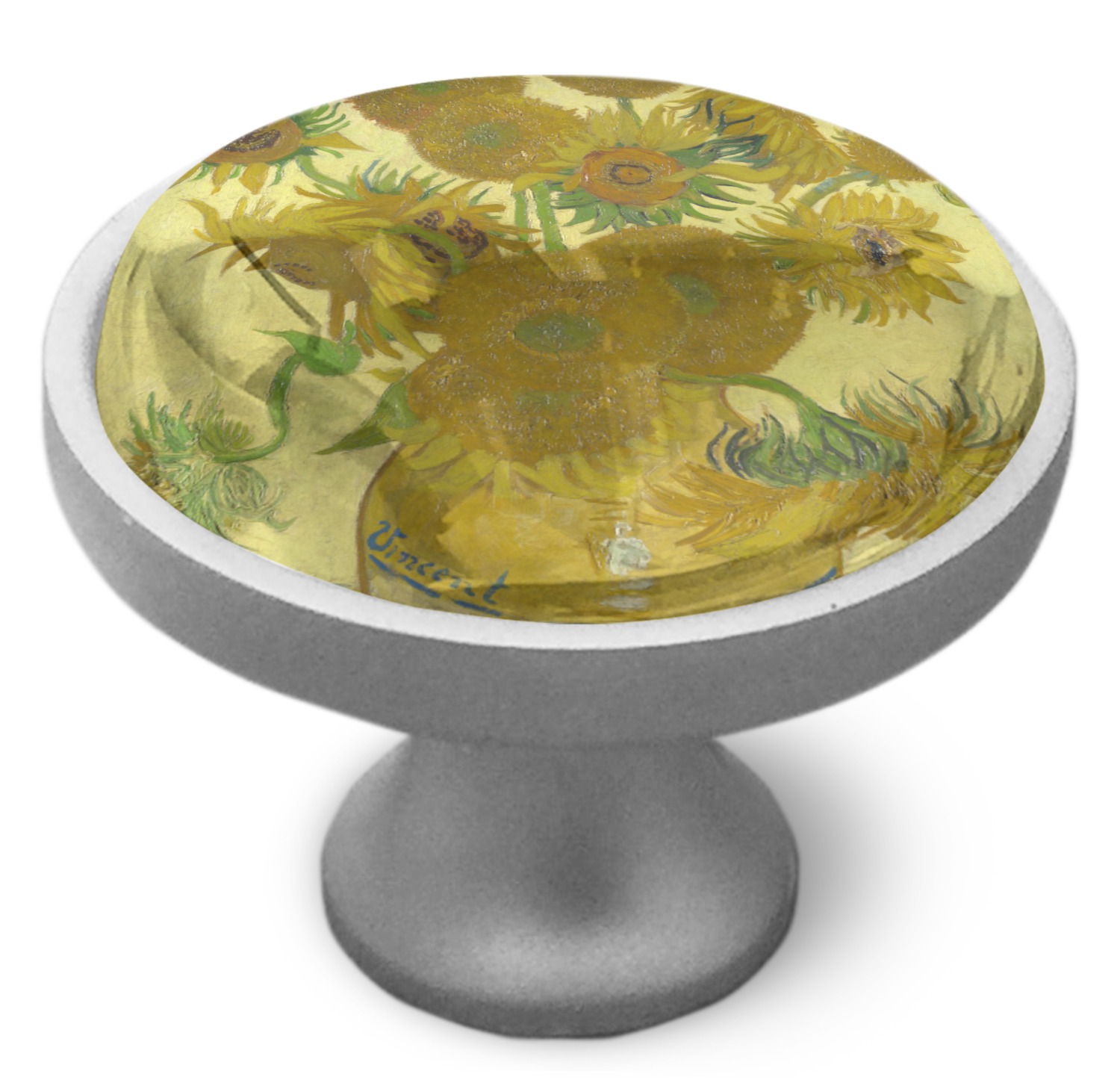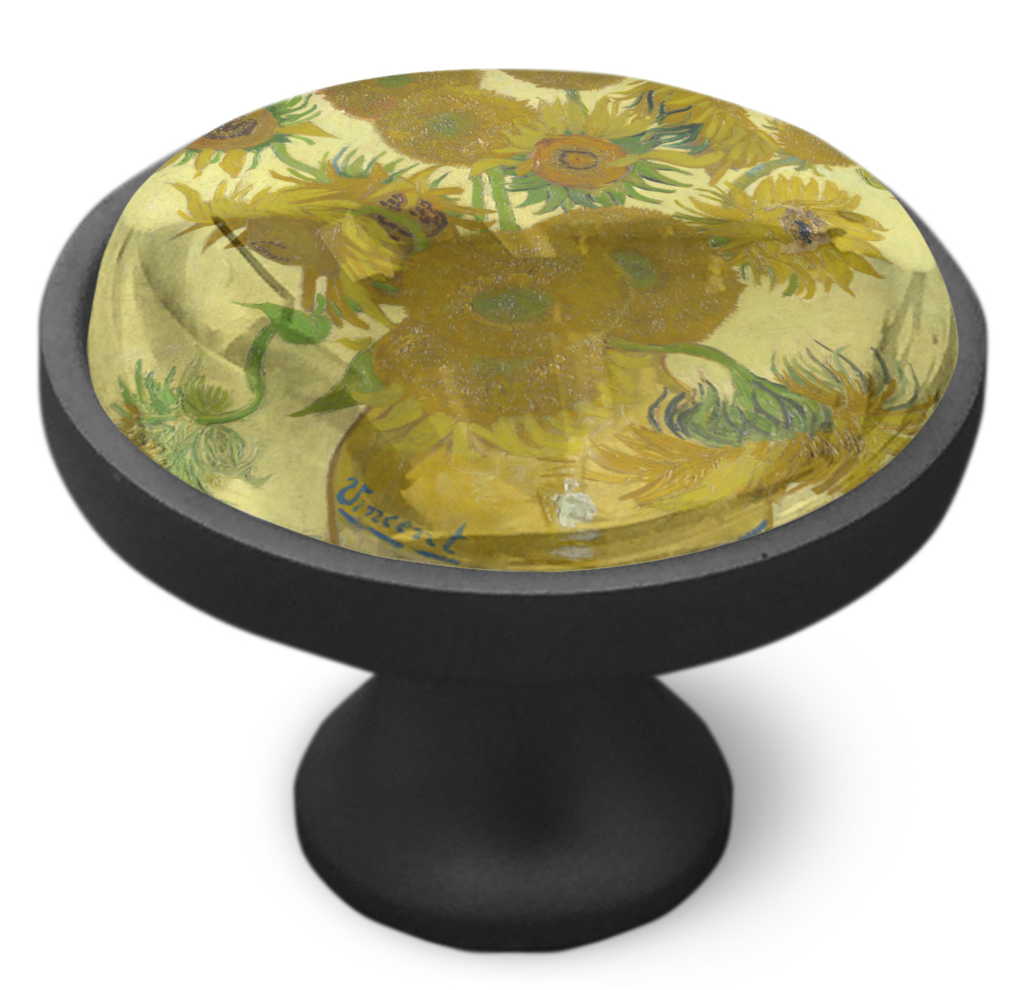 We sell these cabinet pulls in two different colors to better match your room's color scheme. We offer an oil-rubbed bronze base that is black in color, and a satin nickel option, which has a silver color. Your design is displayed across a high gloss vinyl insert that is placed on top of these cabinet handles. We then place a 1 inch thick glass cabochon atop the design, which seals the cabinet knob and makes the colors of your customization stand out. These custom cabinet knobs are approximately 1.3 inches in diameter. Your purchase includes a 1 inch screw that can be used to mount the knob to any cabinet in your home.