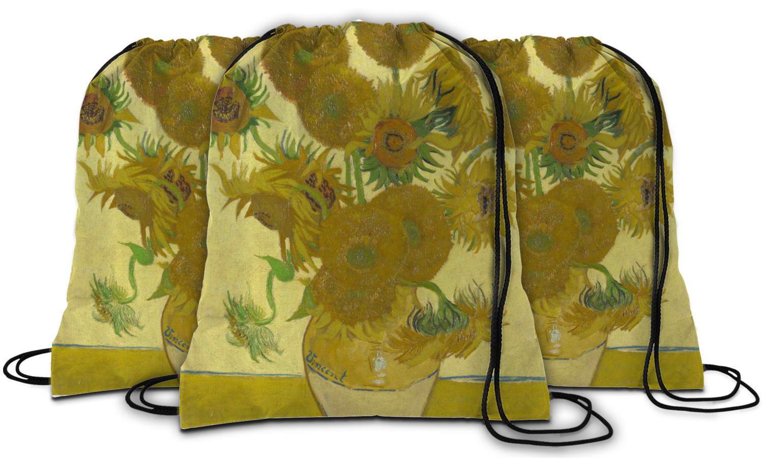 Our drawstring backpacks are available in 3 sizes. Small is approx 15in tall by 13in wide. Medium is approximately 18in tall by 17in wide. Large is 23in tall and 19in wide.