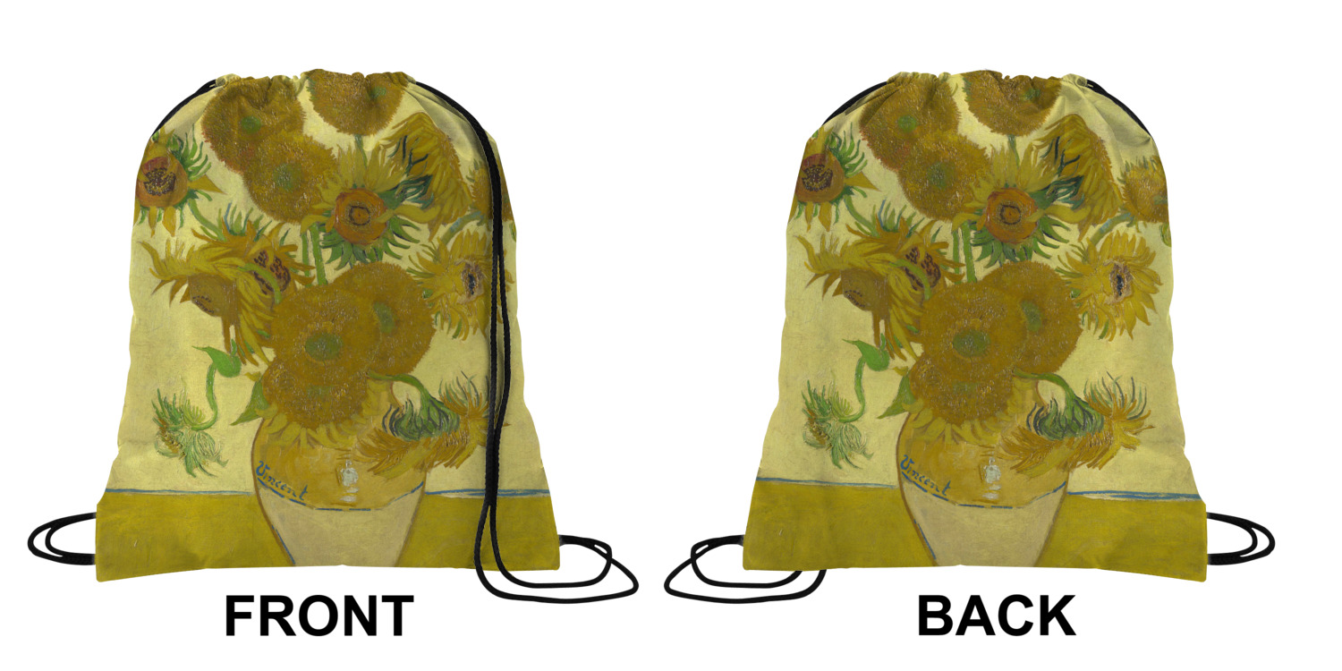 Our drawstring backpacks are available in 3 sizes. Small is approx 15in tall by 13in wide. Medium is approximately 18in tall by 17in wide. Large is 23in tall and 19in wide.