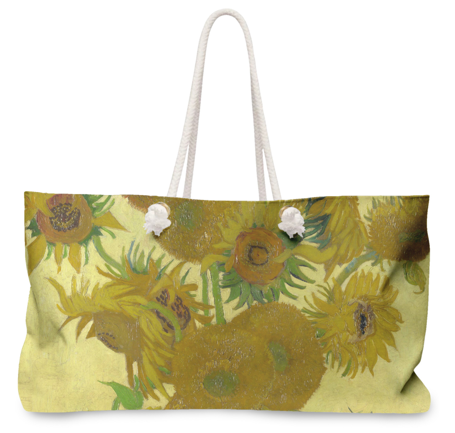 These weekender totes can be customized front and back. The totes are full all over print - so the choice of how background are endless - from beautiful floral or leaf patterns to geometrics or some classic Van Gogh artwork - the possibilities are endless. The totes can also be decorated with photos and logos.