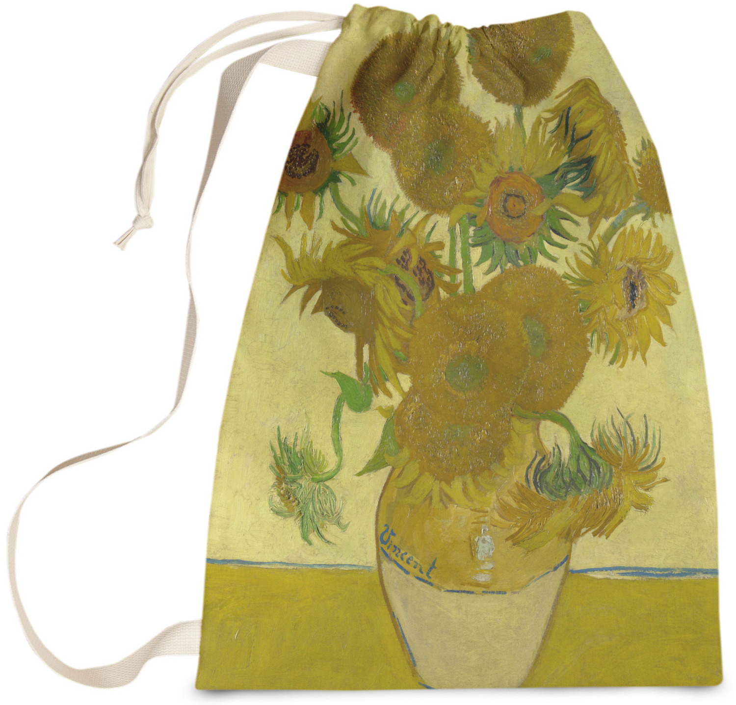 Carry your laundry in style with these customized laundry bags. Available in two sizes, featuring a natural colored woven strap and a cinch cord, these bags hold a lot of clothes or anything else you want to fit in them.