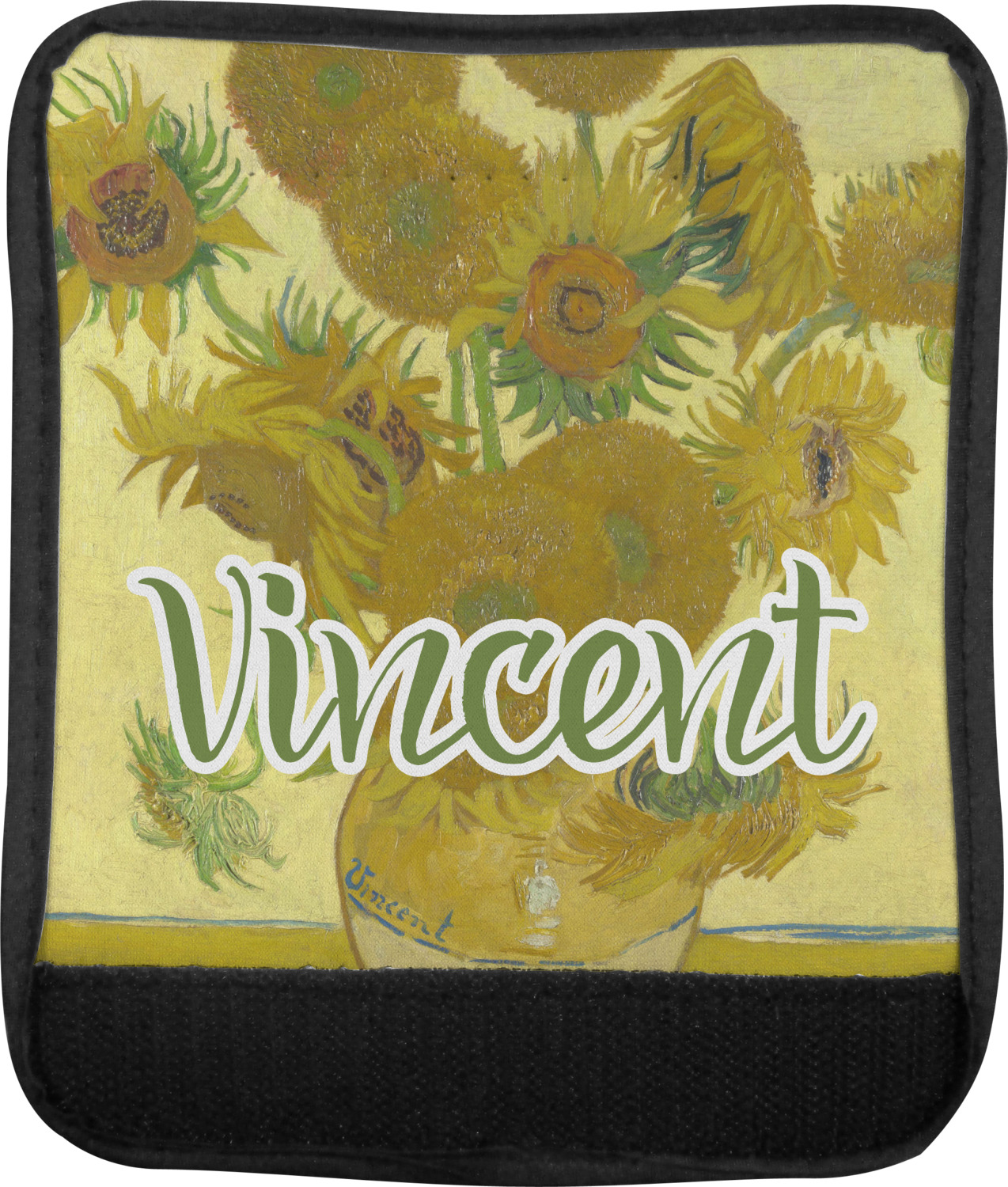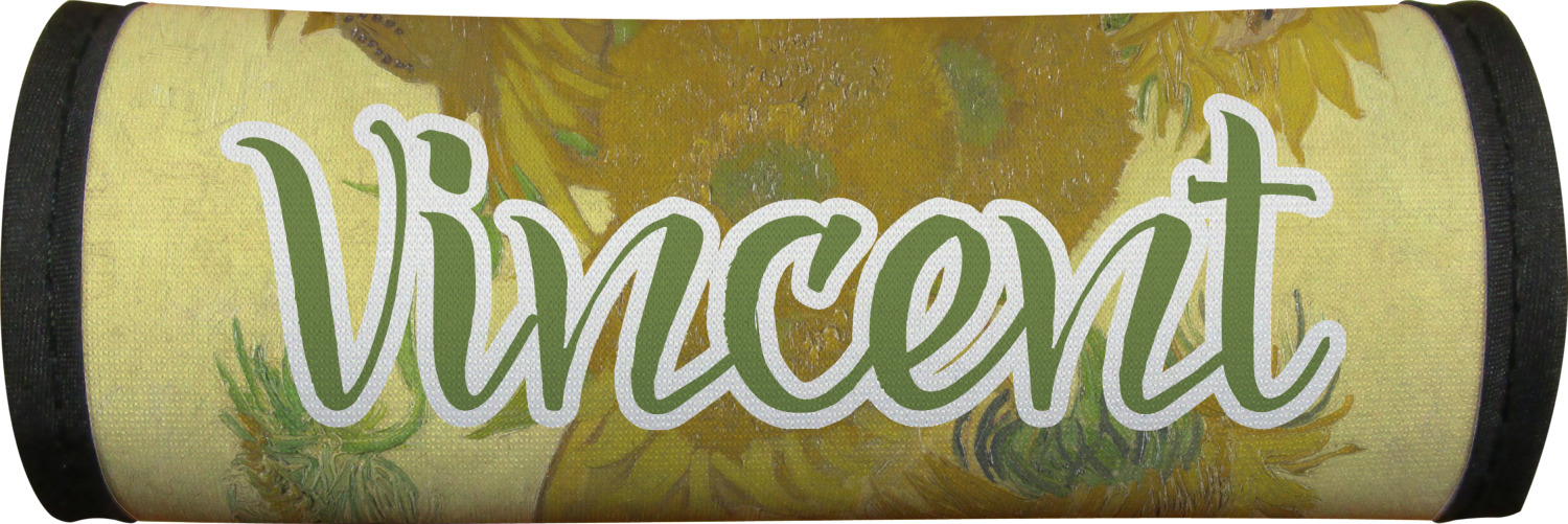 The luggage handle covers are made of neoprene with black trim and have Velcro closure to snugly fit around the handle. Your design is printed on the neoprene. The covers measure approx 5"x6".