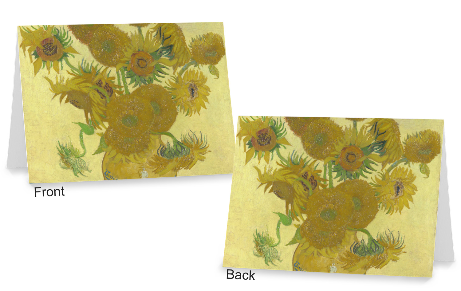 Our custom folded note cards are printed on premium 100lb. card stock and comes with white envelopes. The note card measure 5.5 by 4.25 inches and are blank on the inside for your handwritten message.