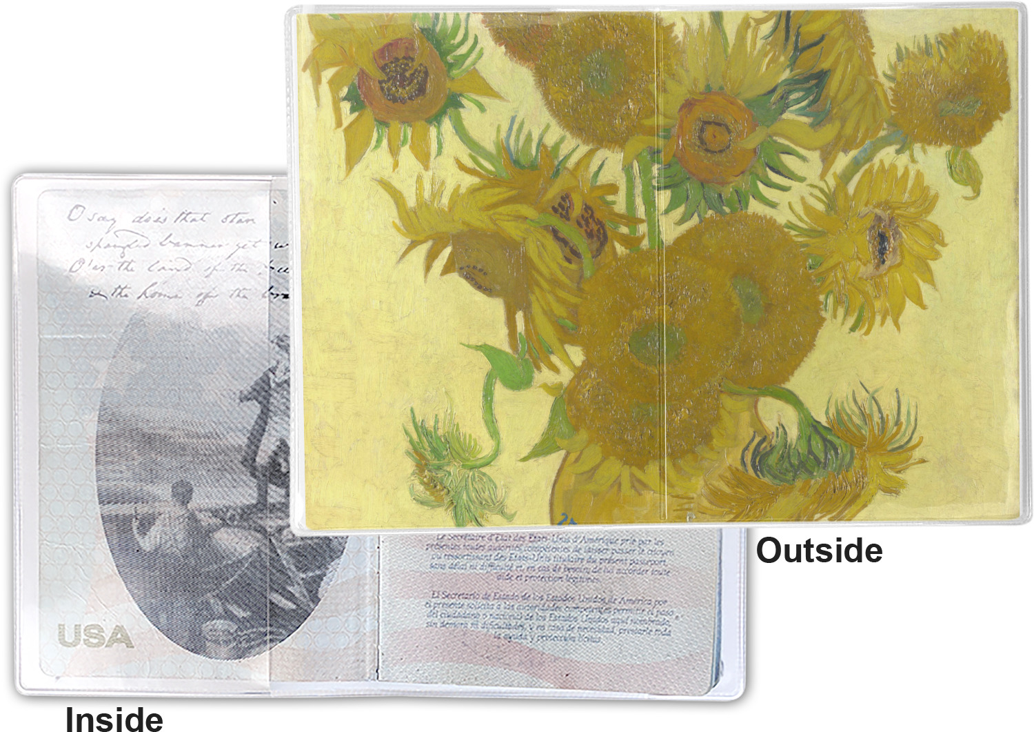 This cover is made of a sturdy clear vinyl with a personalized vinyl insert inside. There is a large and a small pocket on either side to hold the covers of your passport easily and firmly. The passport holder is approximately 7.5" x 5.25", the perfect size to snugly fit your passport. This slim cover is the perfect way to protect your passport without being one more bulky item you have to carry.