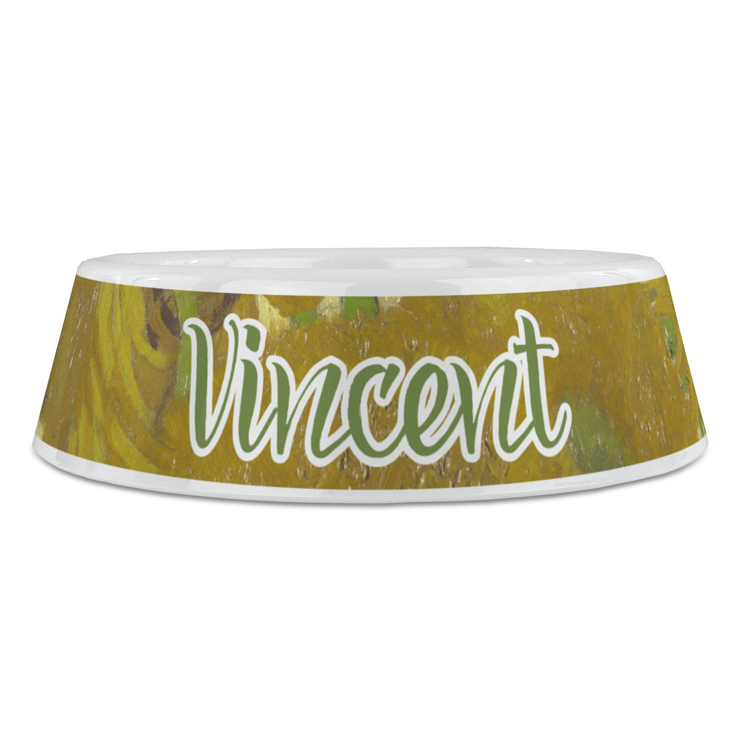 Made from a nearly indestructible composite polymer plastic these bowls come in 3 different sizes to suit any breed of dog. The small bowl measures approximately 5 in diameter and 1.75 tall and holds approximately 1.5 cups of food or water. The medium bowl measures approximately 6 in diameter and 2.25 tall and holds approximately 3 cups of food or water. The large bowl measures approximately 7.2 in diameter and 2.25 tall and holds approximately 4.5 cups of food or water. These bowls are microwave and dishwasher safe so no matter what type of food your dog eats it can be easily cleaned up for the next use. Design your own or use one of our 500 plus designs to make these pet bowls uniquely yours.
