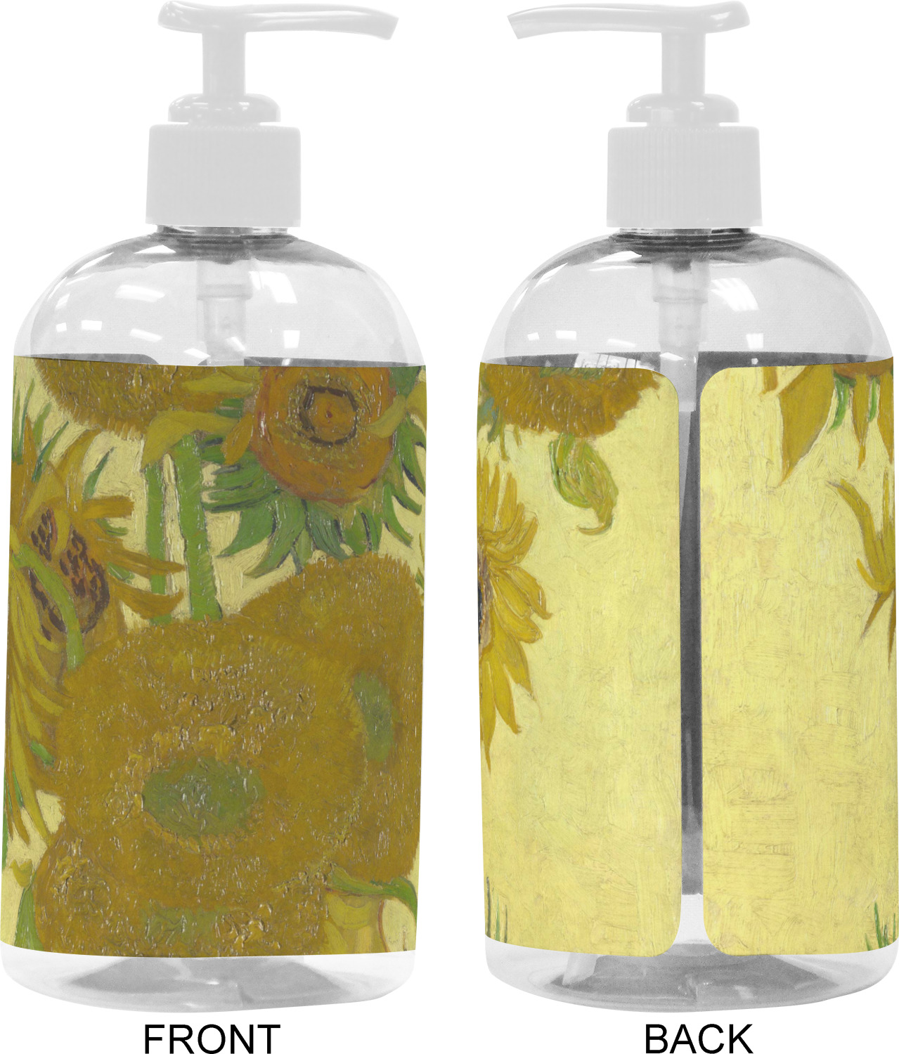 We adhere and wrap your custom printed design around the clear plastic bottle; there is a slight gap at the back for you to see the liquid level. Your design is printed on high gloss vinyl with eco-solvent inks and completely waterproof and will not fade or deteriorate over time. The vinyl is machine cut and adhered by hand to the clear plastic bottle.