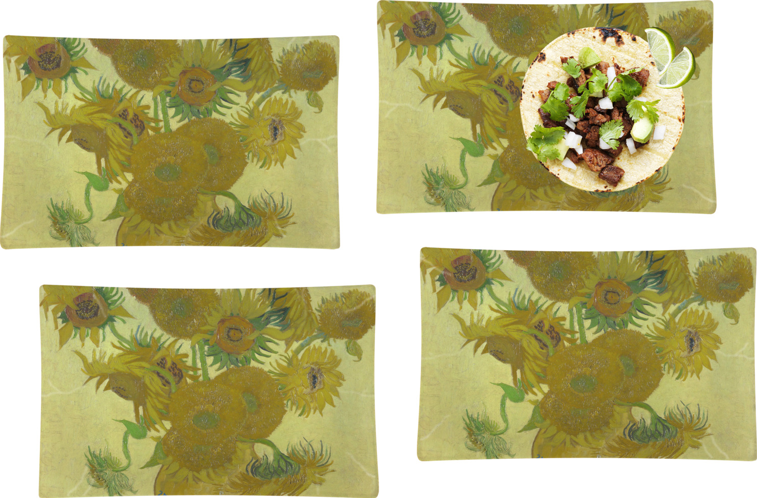 This rectangular plate is about 14" in width and 10" in height; the perfect size for lunch or dinner. These plates are dishwasher safe - proving high in function and in beauty.