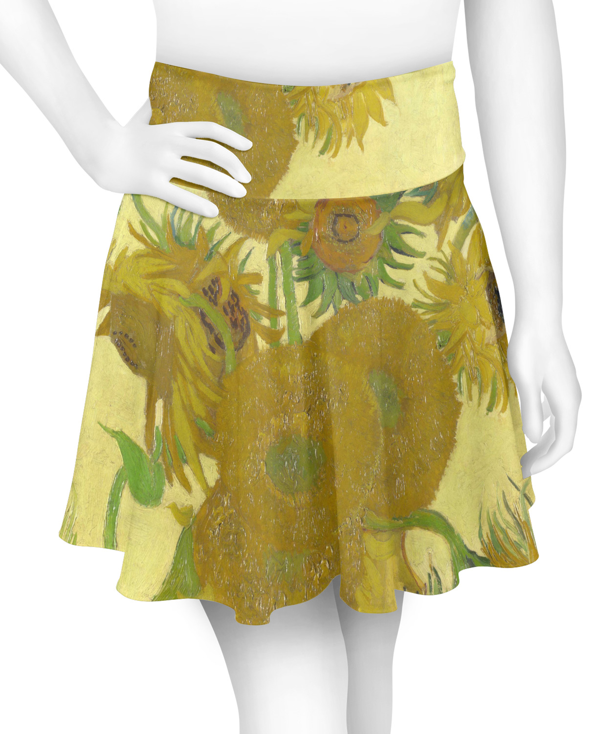 This skirt is a fun skater style that flares out (especially if you take a twirl in it!). The waist band is about 4" thick to wear as a high wasted skirt, but can easily be folded down to become a low waisted skirt. The band hugs you tight while the rest of the skirt is very flowy. The material is a comfortable, casual material that has a very slight sheen to it. It comes in 6 different sizes ranging from XS to 2XL. This skirt is perfect as a casual skirt, but can be easily dressed up to be a more formal skirt.