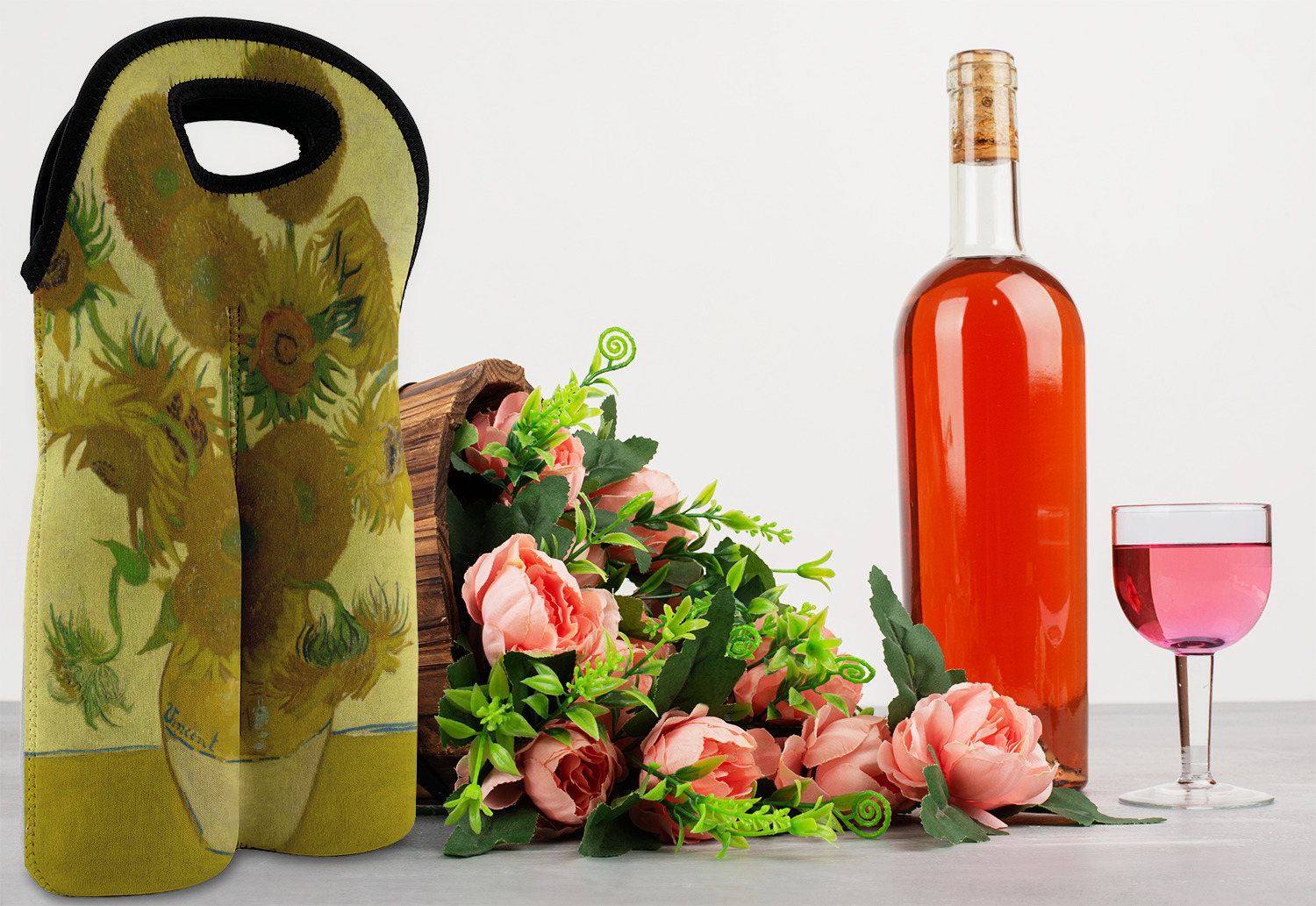 These tote bags are insulated to keep the bottles cold and have a stitched separation down the middle and double handles to keep the two bottles safe and secure during travels.