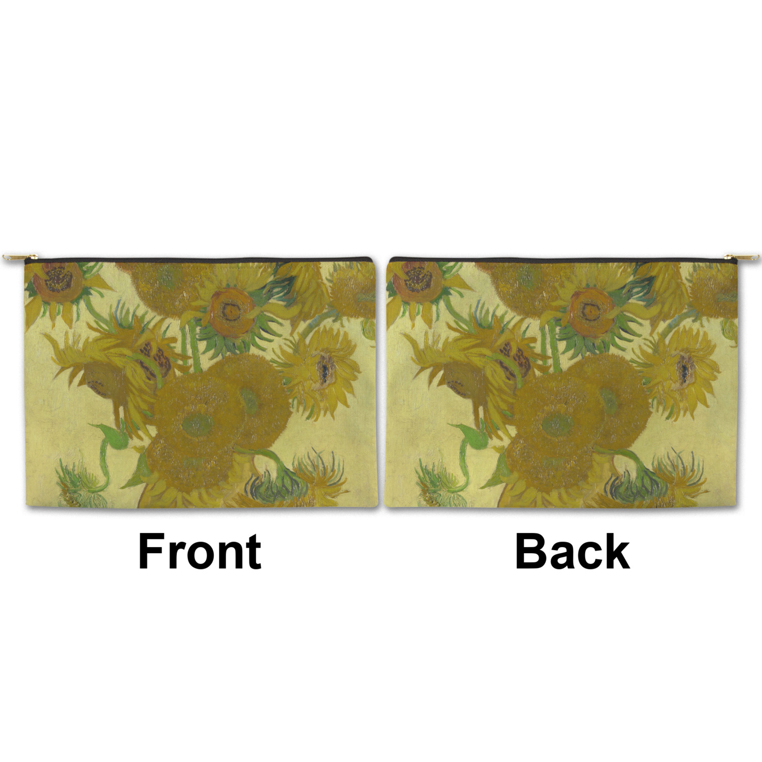 Our zippered pouches are available in two sizes - small: approx 8.5W"x6H and large: approx 12.5Wx8.5H. The pouches are made from a soft & durable canvas fabric that is printed on the outside with your design; the inside has a fused black lining. The printed canvas fabric is then cut and the pouches are sewn right here in the USA. The zipper itself is gold in color and has a round hook.