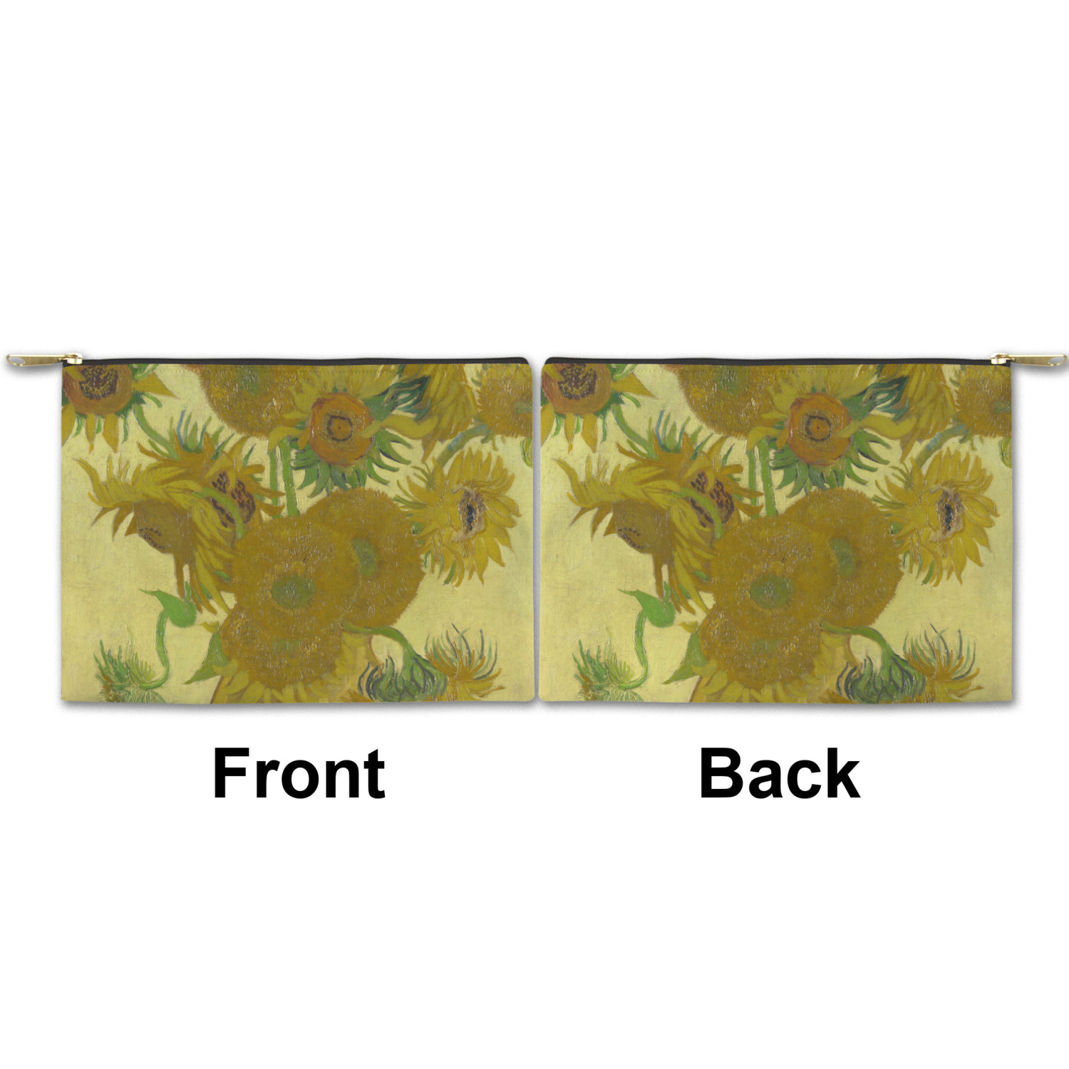 Our zippered pouches are available in two sizes - small: approx 8.5W"x6H and large: approx 12.5Wx8.5H. The pouches are made from a soft & durable canvas fabric that is printed on the outside with your design; the inside has a fused black lining. The printed canvas fabric is then cut and the pouches are sewn right here in the USA. The zipper itself is gold in color and has a round hook.