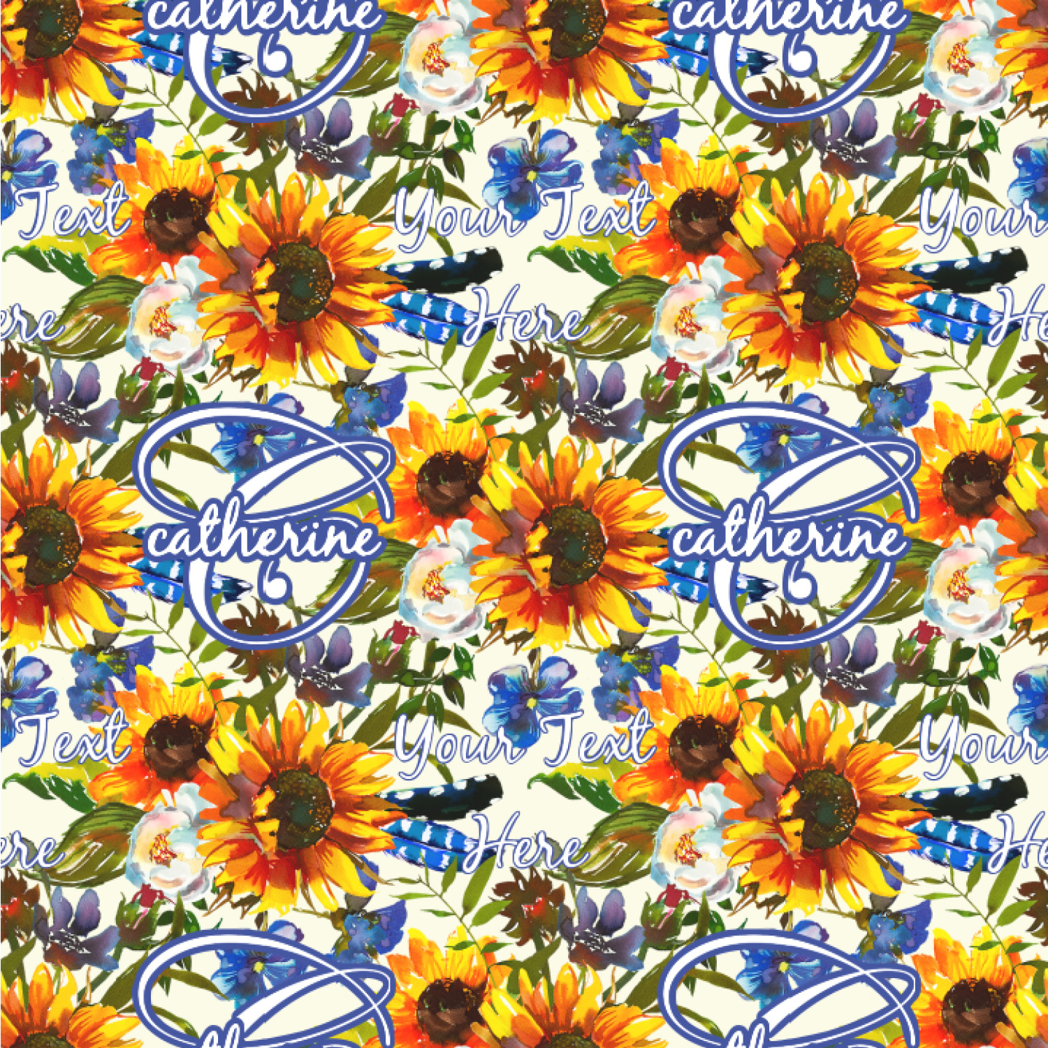 This sunflowers design template is simply beautiful. We chose to personalize it with a name & initial for the main design. We used the blue from the flower in the design and a really pale yellow background.