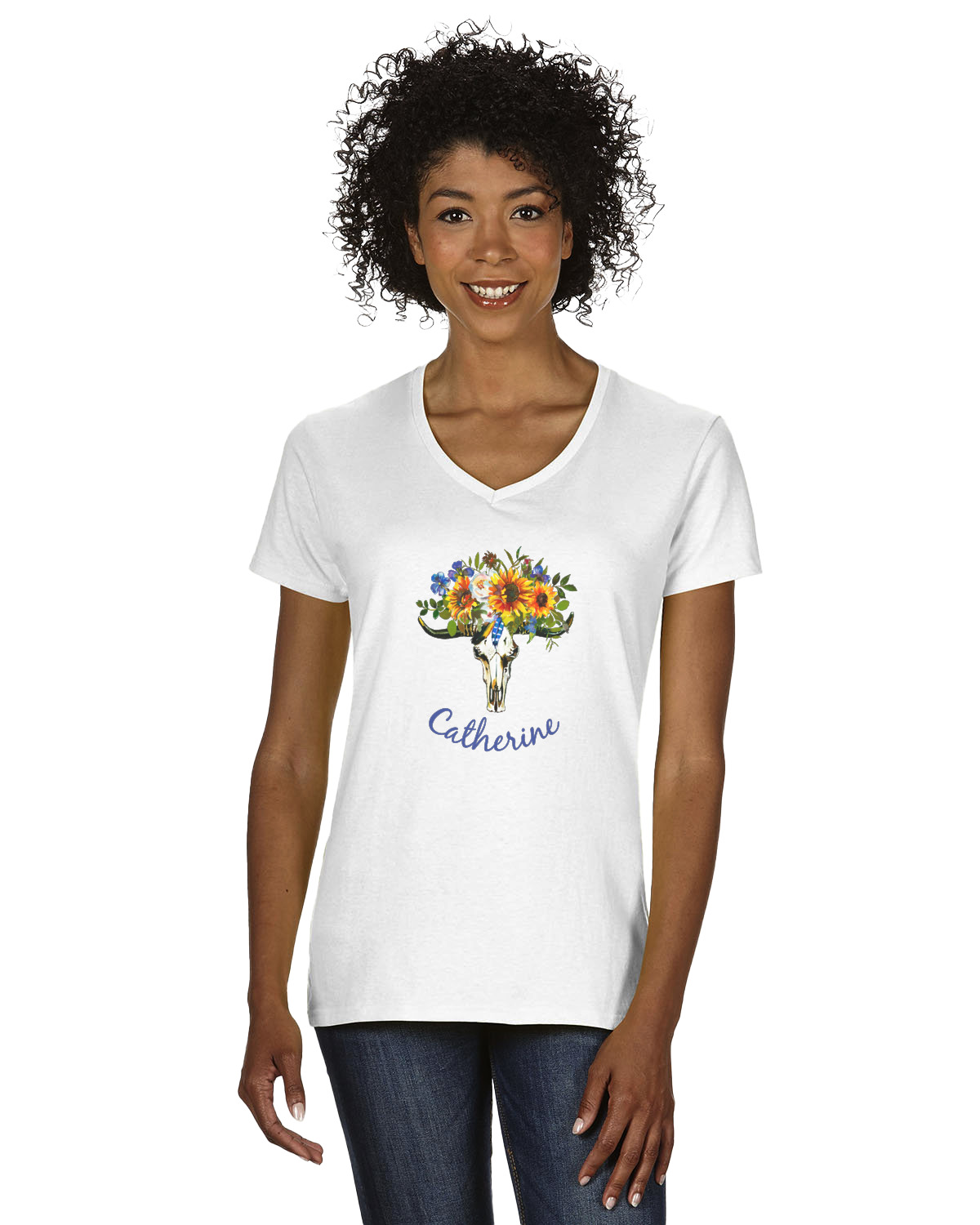Introducing our versatile Women's V-neck shirt, tailored for a flattering missy contoured silhouette. Crafted from premium 5.3 oz. USA cotton with sustainable practices, it features cap sleeves and a tear-away label for added convenience. With sizes catering to all, enjoy comfort and style in every wear.