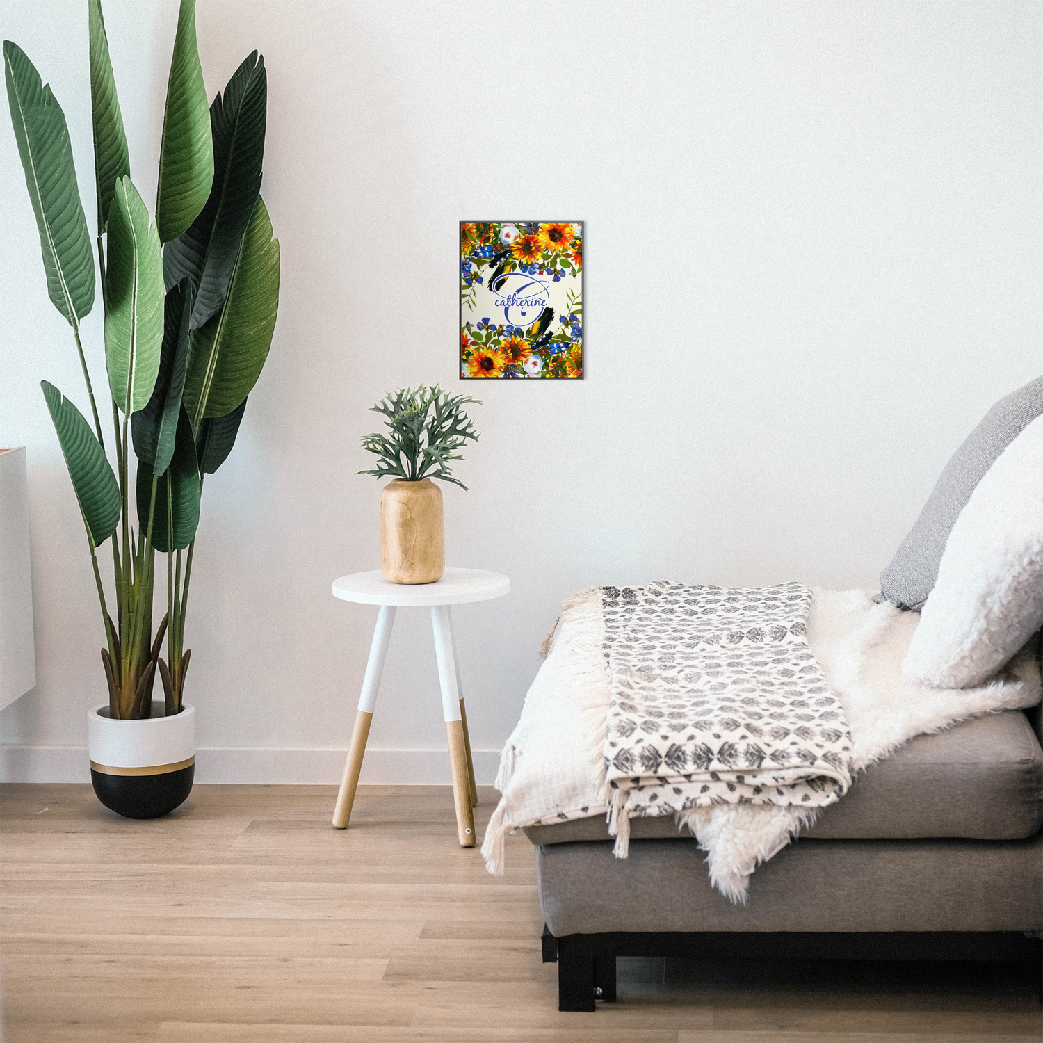 This sunflowers design template is simply beautiful. We chose to personalize it with a name & initial for the main design. We used the blue from the flower in the design and a really pale yellow background.