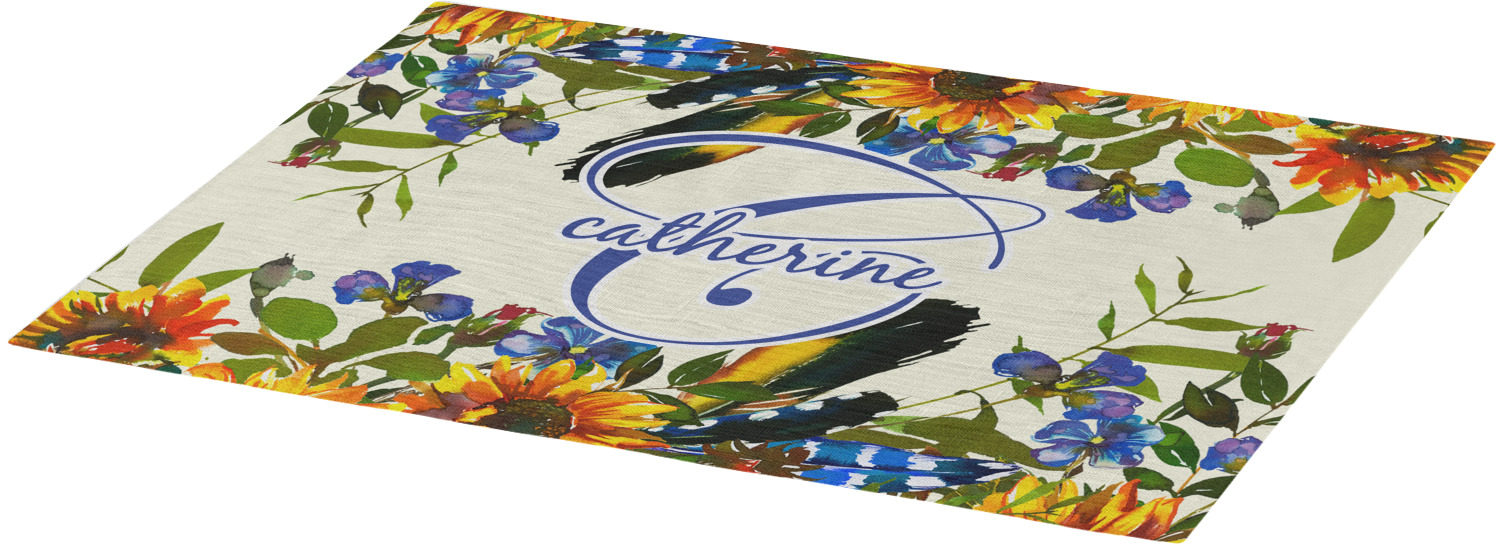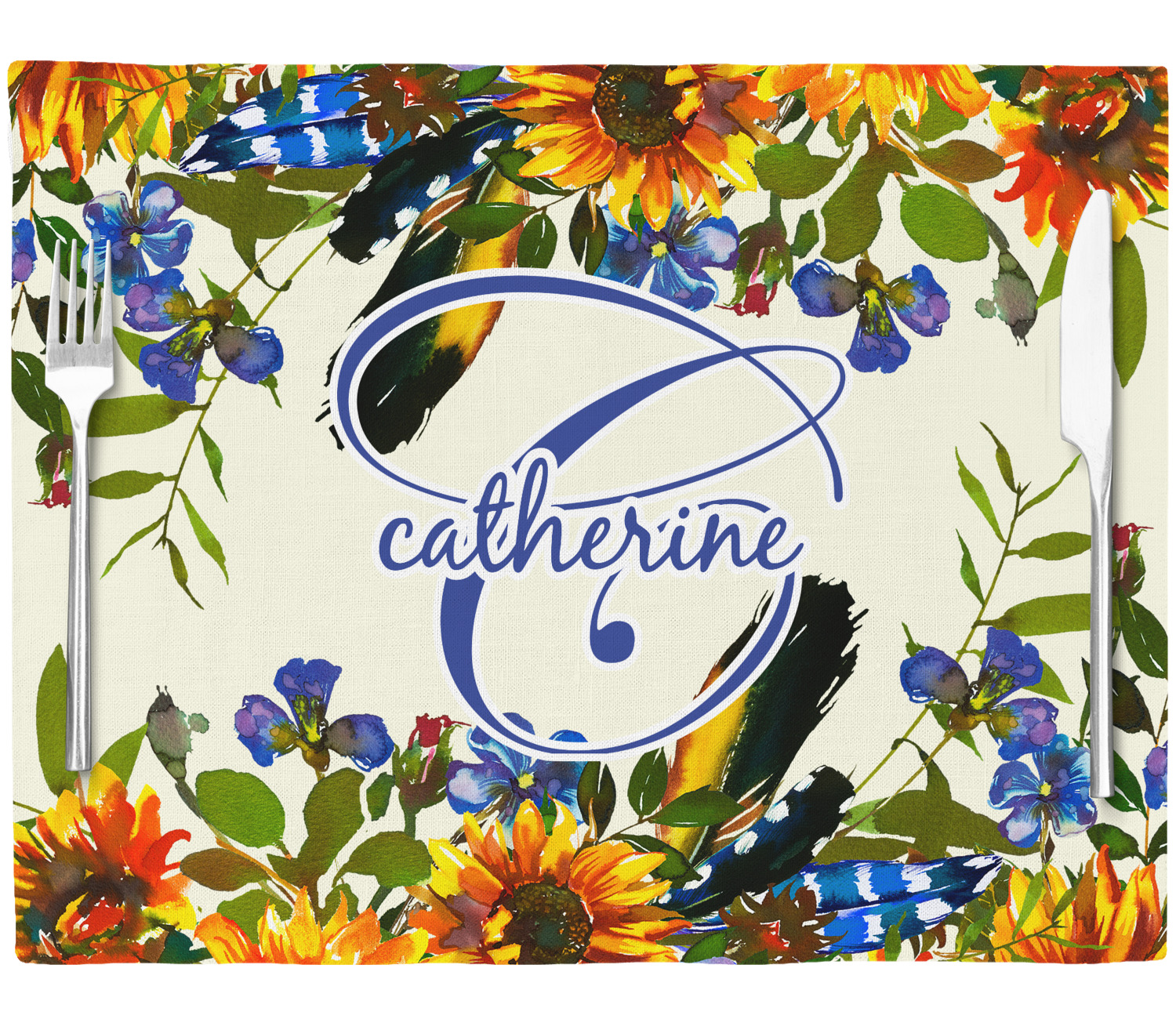 Each of our table mats are a poly twill material with woven burlap detailing. This creates a soft, quality placemat for us to fully print your personalized design across. The woven twill also adds a wrinkle-free surface to set your table! Each customizable placemat is a rectangle shape measuring at approximately 13 x 18 and printed here in the USA.