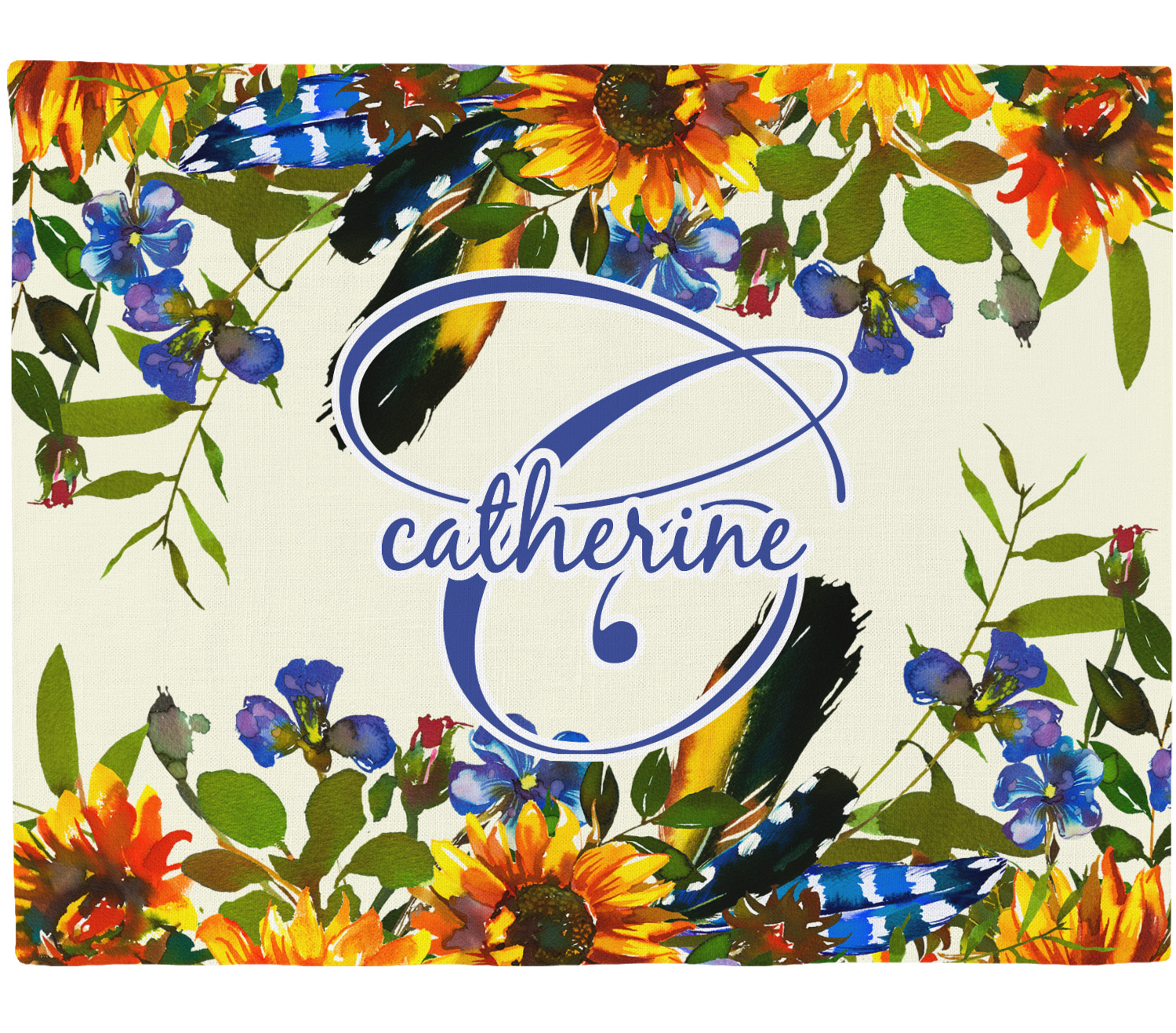 This sunflowers design template is simply beautiful. We chose to personalize it with a name & initial for the main design. We used the blue from the flower in the design and a really pale yellow background.