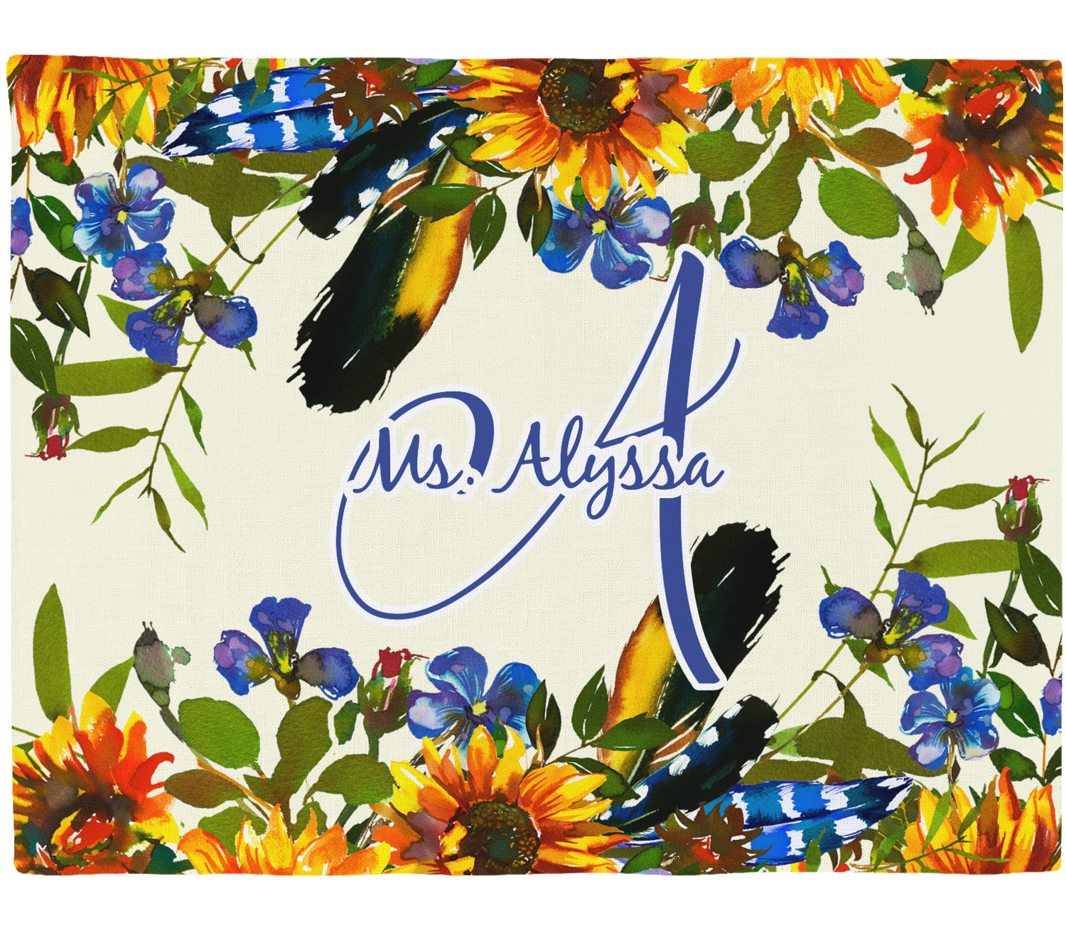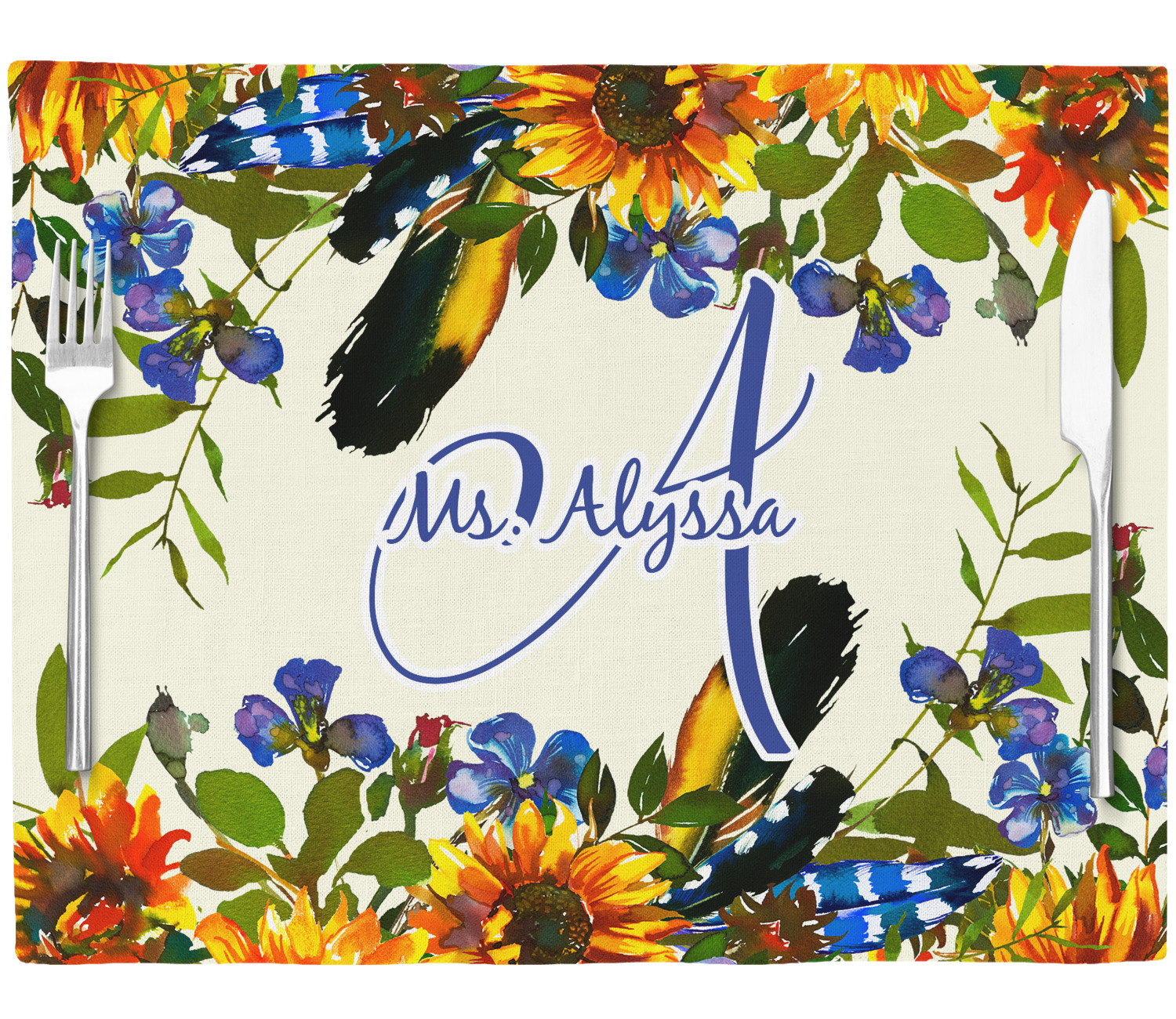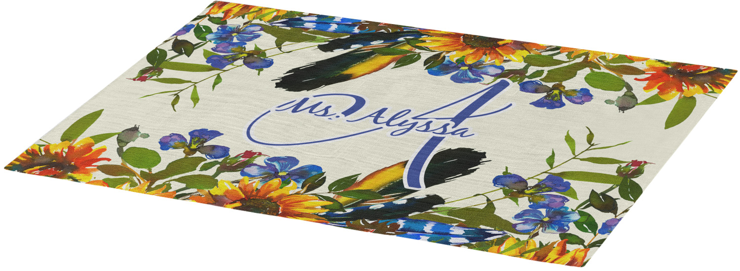 Each of our table mats are a poly twill material with woven burlap detailing. This creates a soft, quality placemat for us to fully print your personalized design across. The woven twill also adds a wrinkle-free surface to set your table! Each customizable placemat is a rectangle shape measuring at approximately 13 x 18 and printed here in the USA.