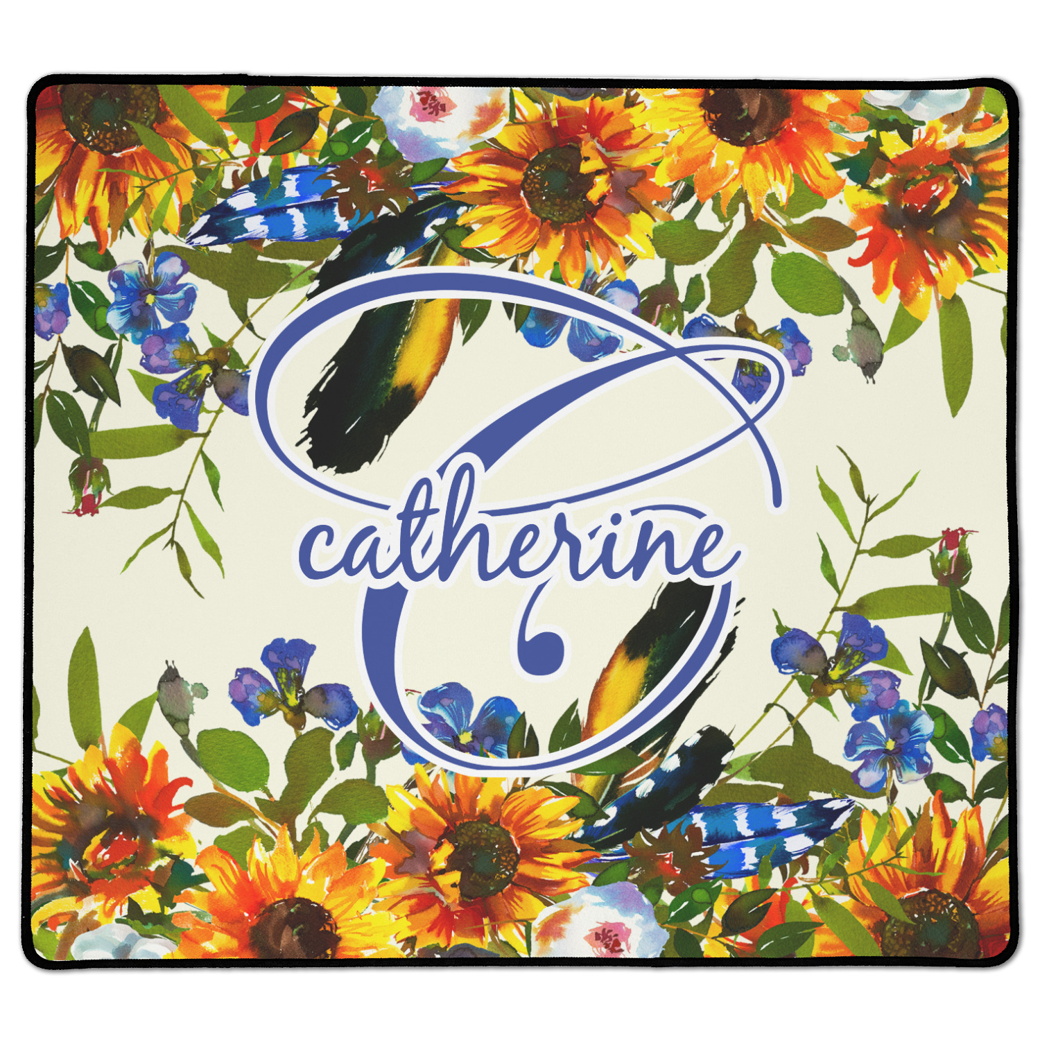This sunflowers design template is simply beautiful. We chose to personalize it with a name & initial for the main design. We used the blue from the flower in the design and a really pale yellow background.