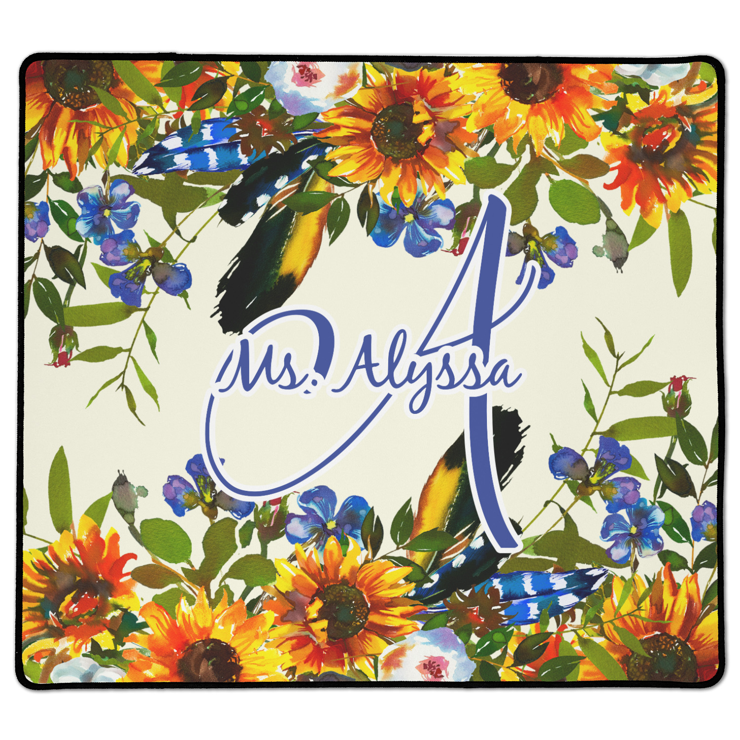 This sunflowers design template is simply beautiful. We chose to personalize it with a name & initial for the main design. We used the blue from the flower in the design and a really pale yellow background.