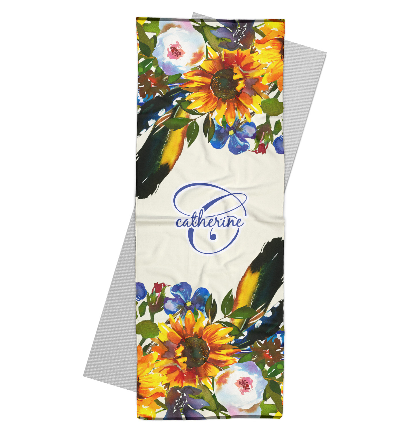 This gorgeous yoga mat towel is printed with your own design on the front with a grey colored back. They are the perfect thing to take with you to a yoga class where you use community mats. No need to worry about someone else's sweat left behind! They also give you a little extra grip on your mat, especially for when you do a hot yoga workout! They measure at approximately 24" W x 68" H. They are the perfect thing for your regular yoga classes or workouts.