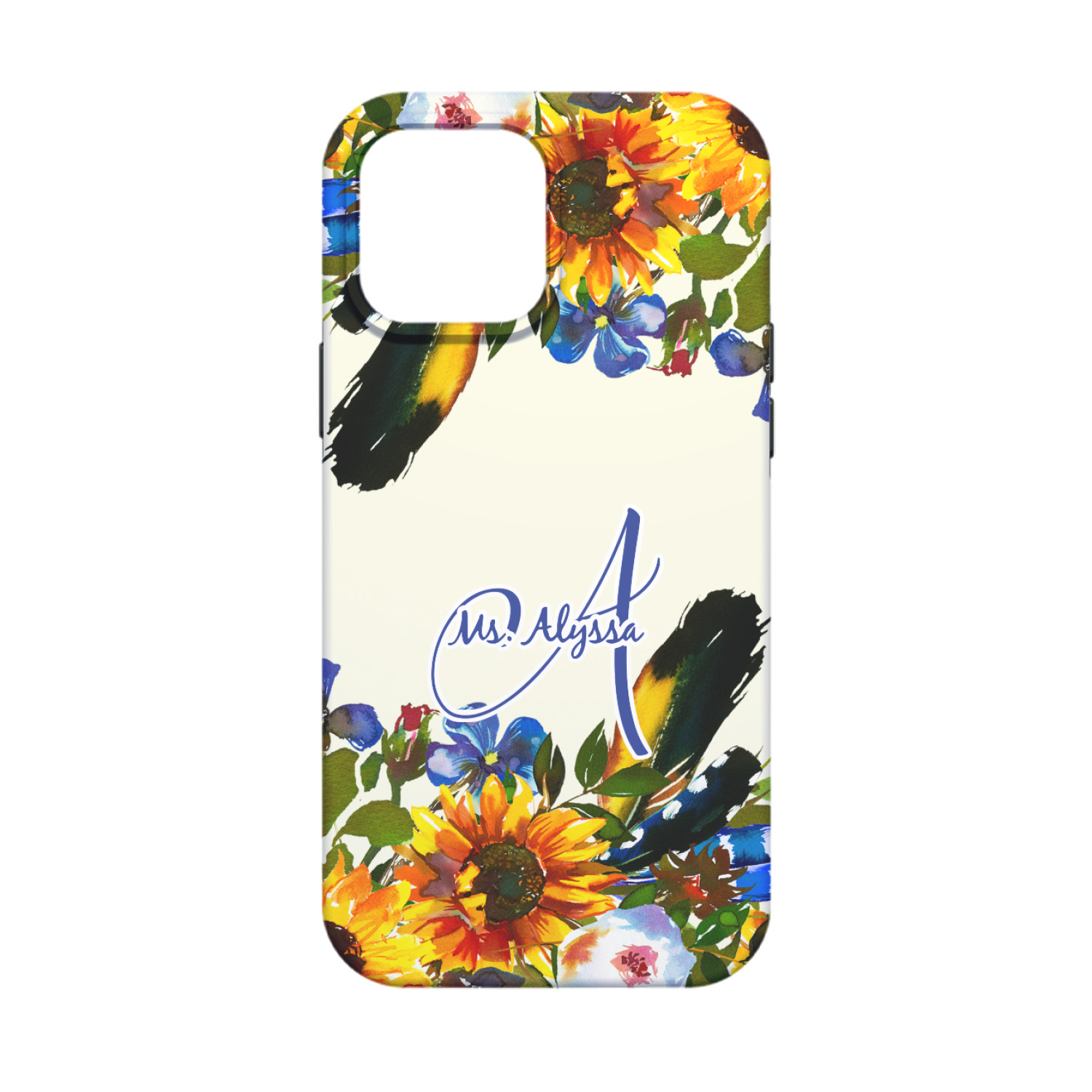 This sunflowers design template is simply beautiful. We chose to personalize it with a name & initial for the main design. We used the blue from the flower in the design and a really pale yellow background.
