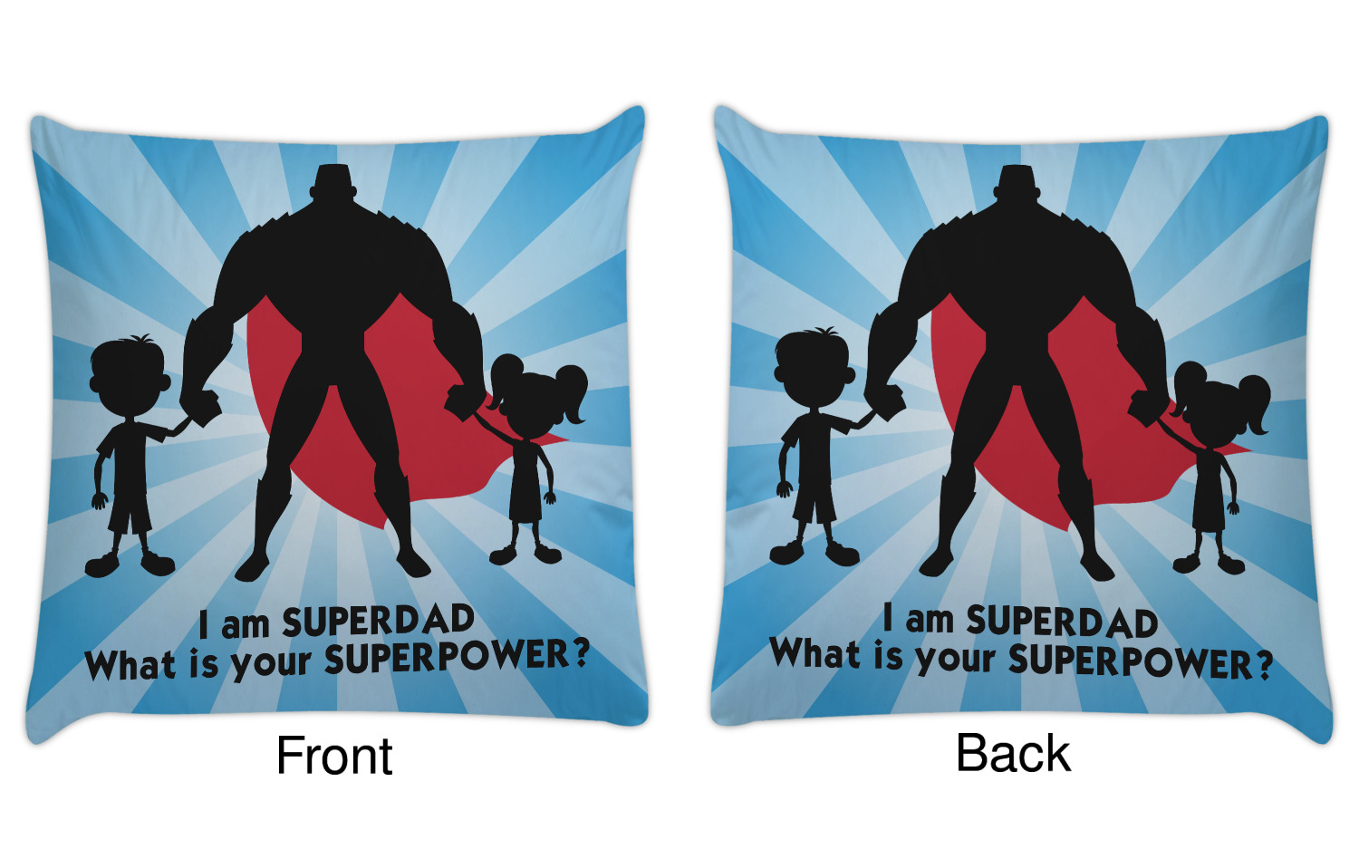 Our customization and rendering system allows you to customize and personalize the design to your liking. You are able to change the colors on the starburst, the colors of the graphic and of course the cape. We chose to use the text "I am a super dad. What is your super power?"; you can use whatever text you like.