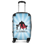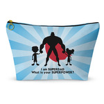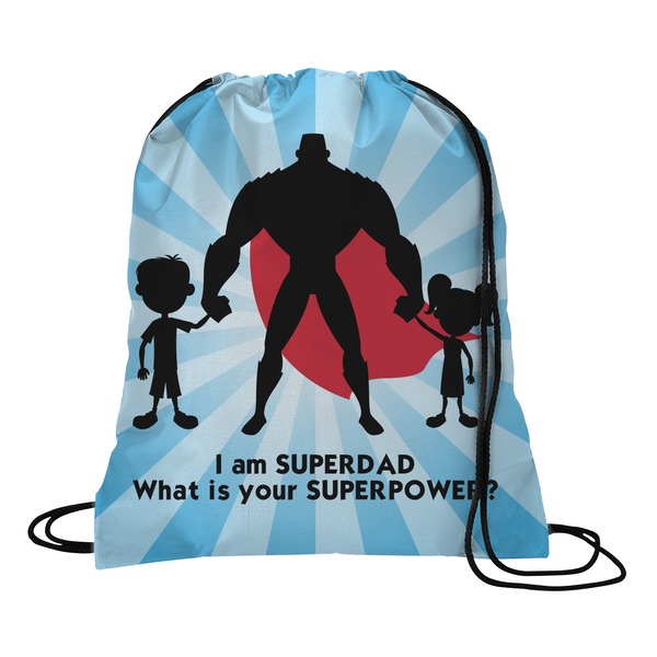 Our dads are our superheroes and this super dad design reflects that. Our design depicts a superhero male holding hands with a little boy and girl. Our super hero dad is wearing a red cape. We used a starburst in blue to really highlight our superhero dad!