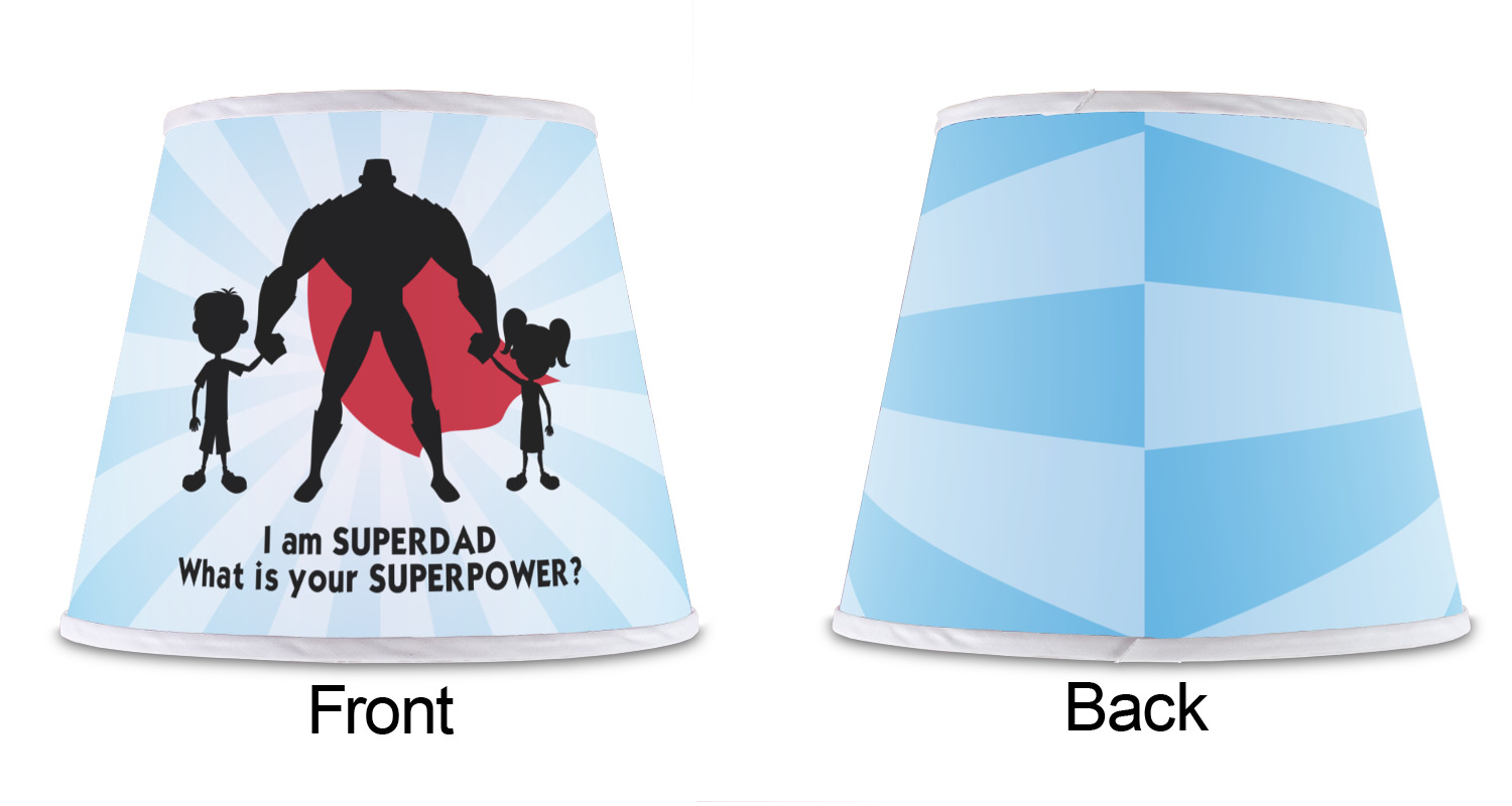 Our customization and rendering system allows you to customize and personalize the design to your liking. You are able to change the colors on the starburst, the colors of the graphic and of course the cape. We chose to use the text "I am a super dad. What is your super power?"; you can use whatever text you like.