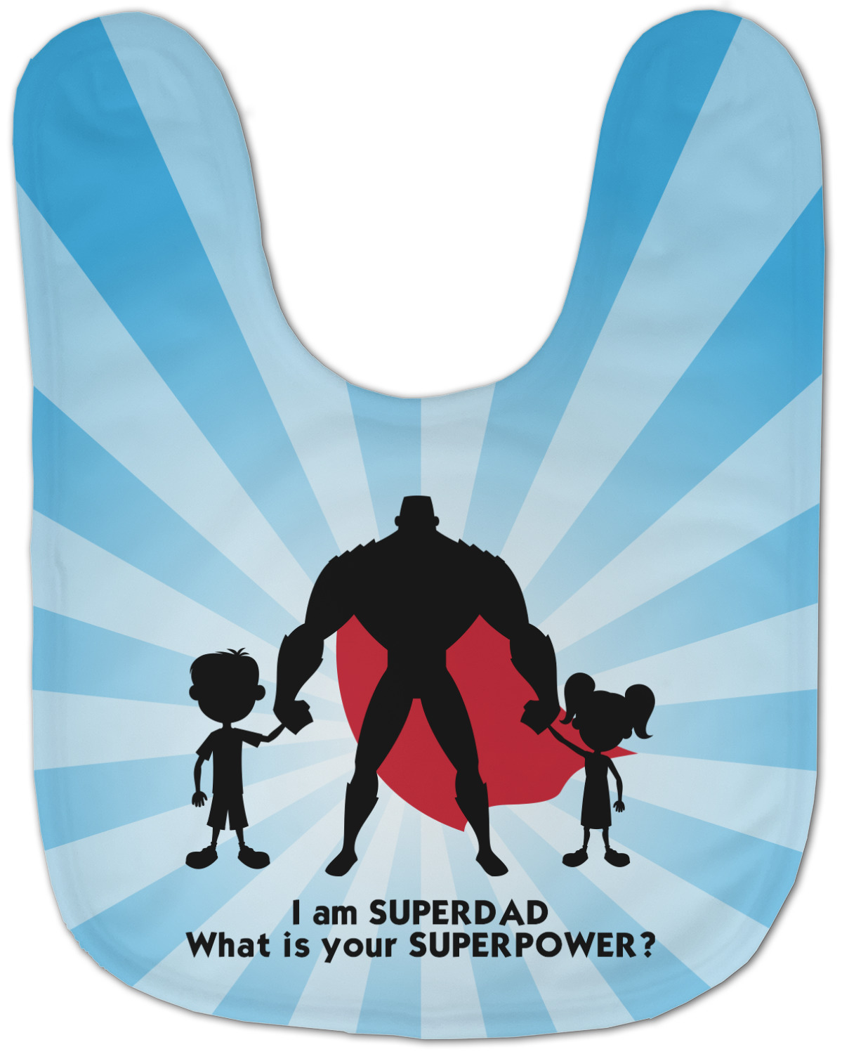 Our dads are our superheroes and this super dad design reflects that. Our design depicts a superhero male holding hands with a little boy and girl. Our super hero dad is wearing a red cape. We used a starburst in blue to really highlight our superhero dad!