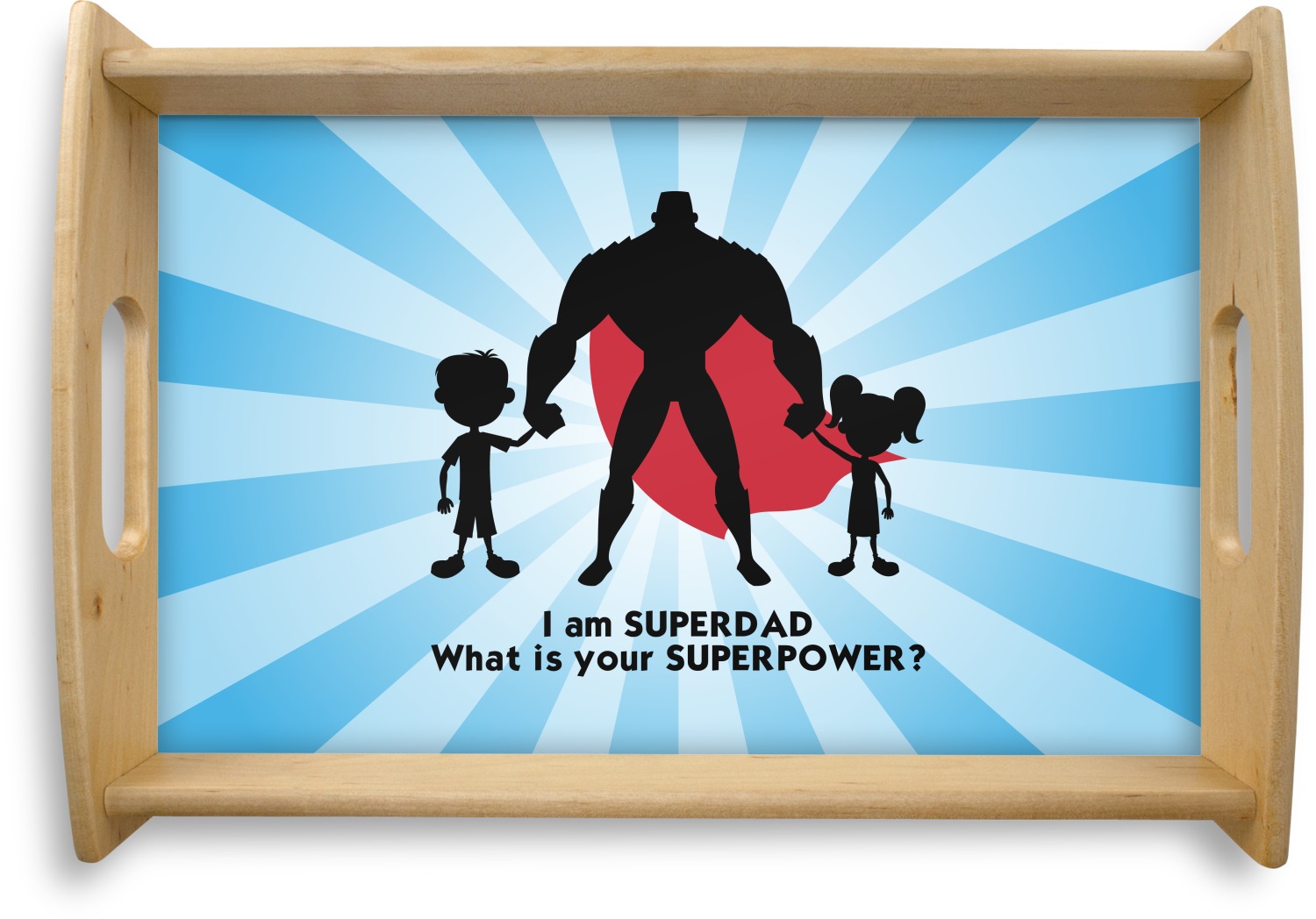 Our dads are our superheroes and this super dad design reflects that. Our design depicts a superhero male holding hands with a little boy and girl. Our super hero dad is wearing a red cape. We used a starburst in blue to really highlight our superhero dad!