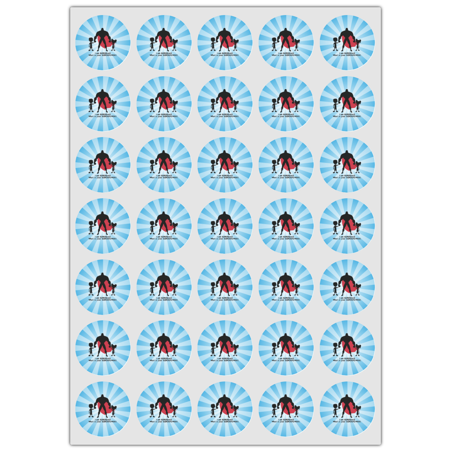 Our customization and rendering system allows you to customize and personalize the design to your liking. You are able to change the colors on the starburst, the colors of the graphic and of course the cape. We chose to use the text "I am a super dad. What is your super power?"; you can use whatever text you like.