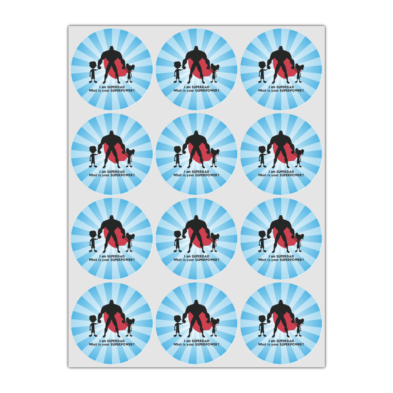 Our customization and rendering system allows you to customize and personalize the design to your liking. You are able to change the colors on the starburst, the colors of the graphic and of course the cape. We chose to use the text "I am a super dad. What is your super power?"; you can use whatever text you like.