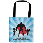 Our dads are our superheroes and this super dad design reflects that. Our design depicts a superhero male holding hands with a little boy and girl. Our super hero dad is wearing a red cape. We used a starburst in blue to really highlight our superhero dad!