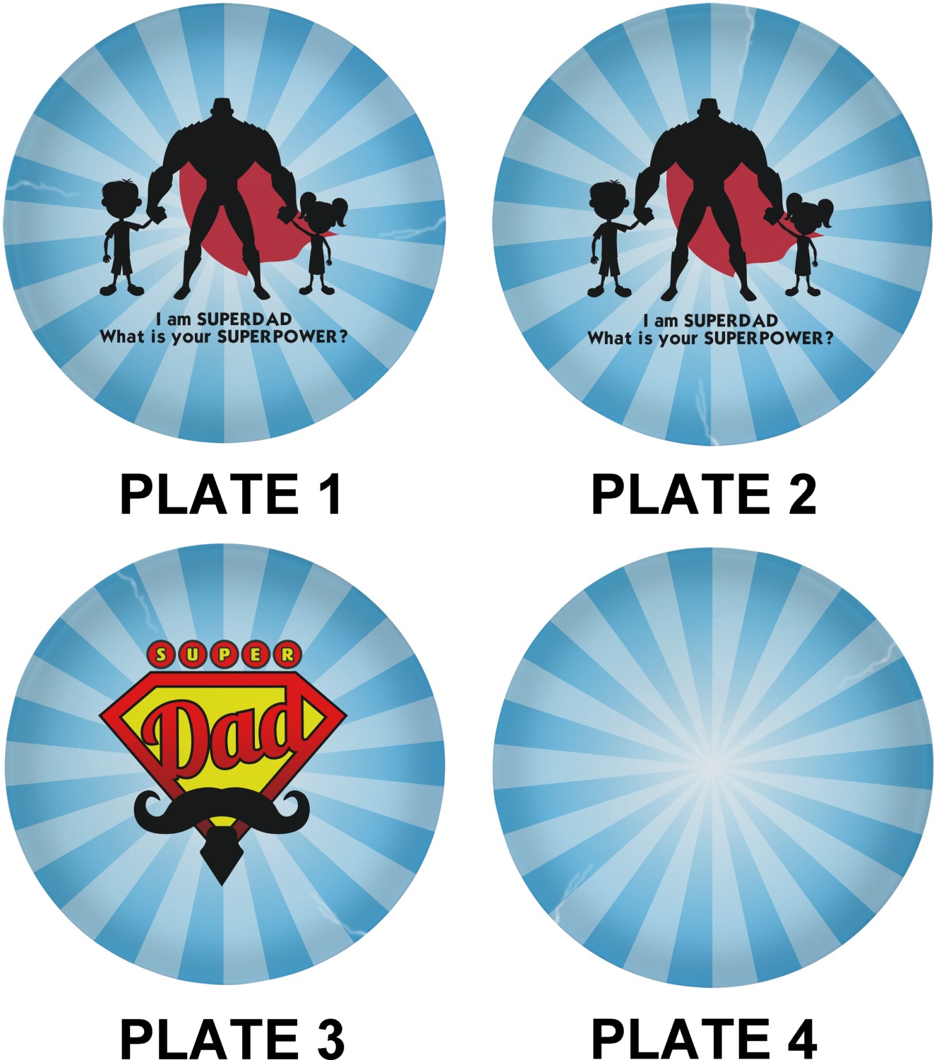 Our customization and rendering system allows you to customize and personalize the design to your liking. You are able to change the colors on the starburst, the colors of the graphic and of course the cape. We chose to use the text "I am a super dad. What is your super power?"; you can use whatever text you like.