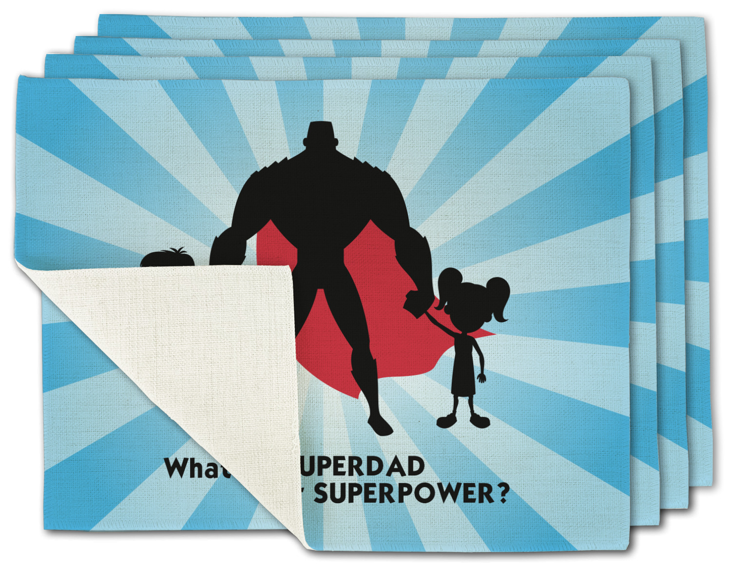 Our customization and rendering system allows you to customize and personalize the design to your liking. You are able to change the colors on the starburst, the colors of the graphic and of course the cape. We chose to use the text "I am a super dad. What is your super power?"; you can use whatever text you like.