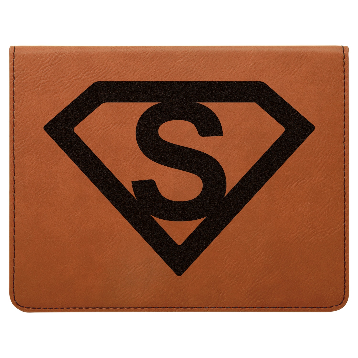 This set includes a wine stopper, pourer, drip ring, and a corkscrew! The exterior of the box is a gorgeous, cognac-brown leatherette, while the interior is covered in a black, velvety material. Four foam indentations, unique to the shape of the wine tool, are found at the bottom half of the box's interior. The tools fit snugly into each of their designated spots, and the foam material helps to protect the integrity of your tools. Each of the wine gadgets features a bamboo accent, with the location and style depending on the tool itself. We laser engrave your personalized design onto the lid of the box, which easily flips open and is secured closed by a small magnet. The wine accessories box measures at 7 by 5.5 inches in total.