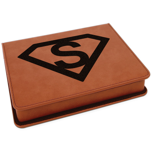 • Elegant Leatherette Box: 7" x 5.5" cognac-colored box with a stylish, laser-engraved design on the lid.