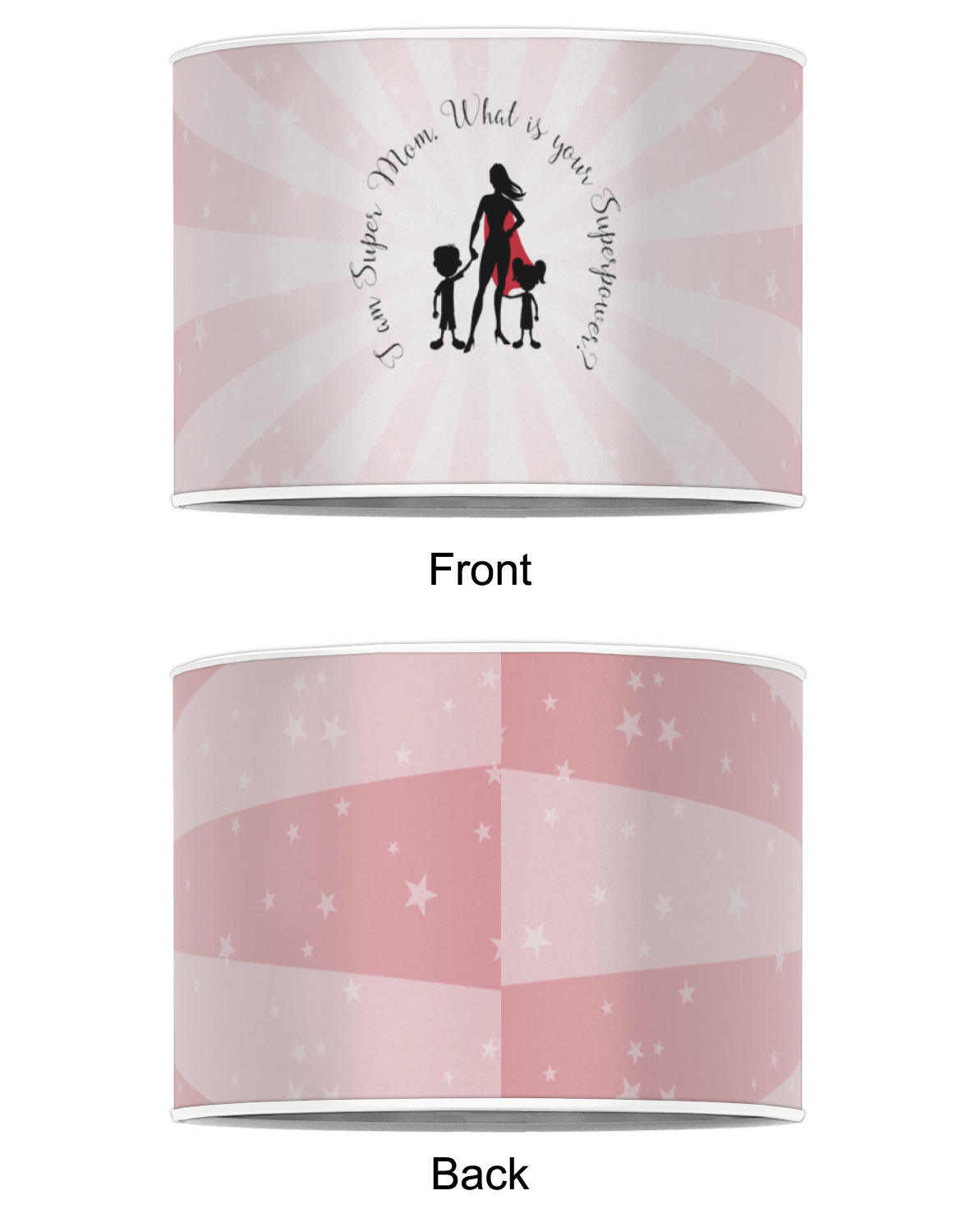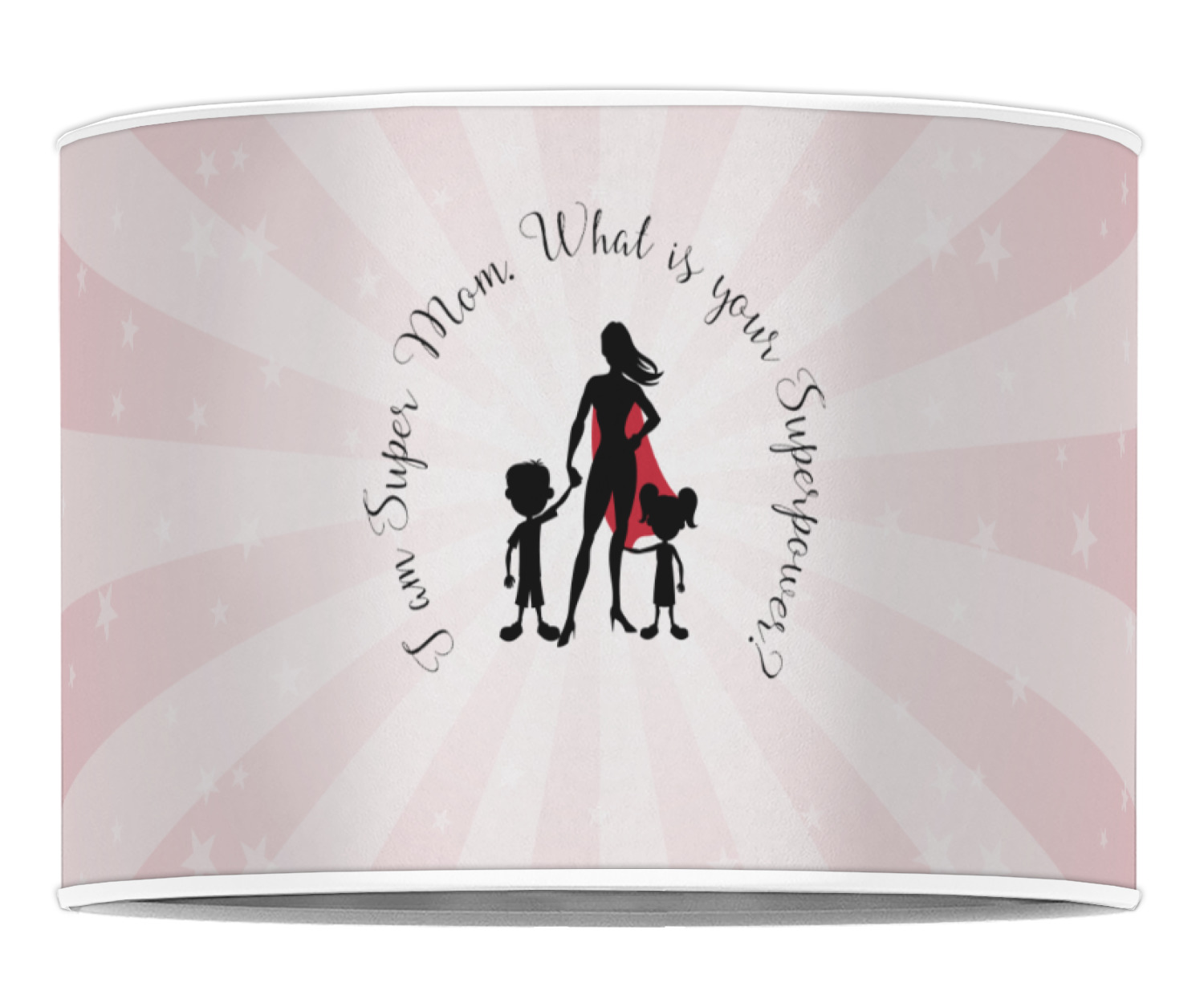 Our Super Mom design is perfect for your Mother's Day Gift. Moms today are truly super heroes with all that they have to balance. Our adorable design depicts a super hero mom / woman holding hands with a little boy and a little girl. Our super hero mom is wearing a red cape. We used a blush colored starburst with stars to highlight our beautiful mother. We personalized with our new circular text and used the words "I am a Super Mom. What is your Superpower?". We use a scripty girly font. We think the design looks outstanding!