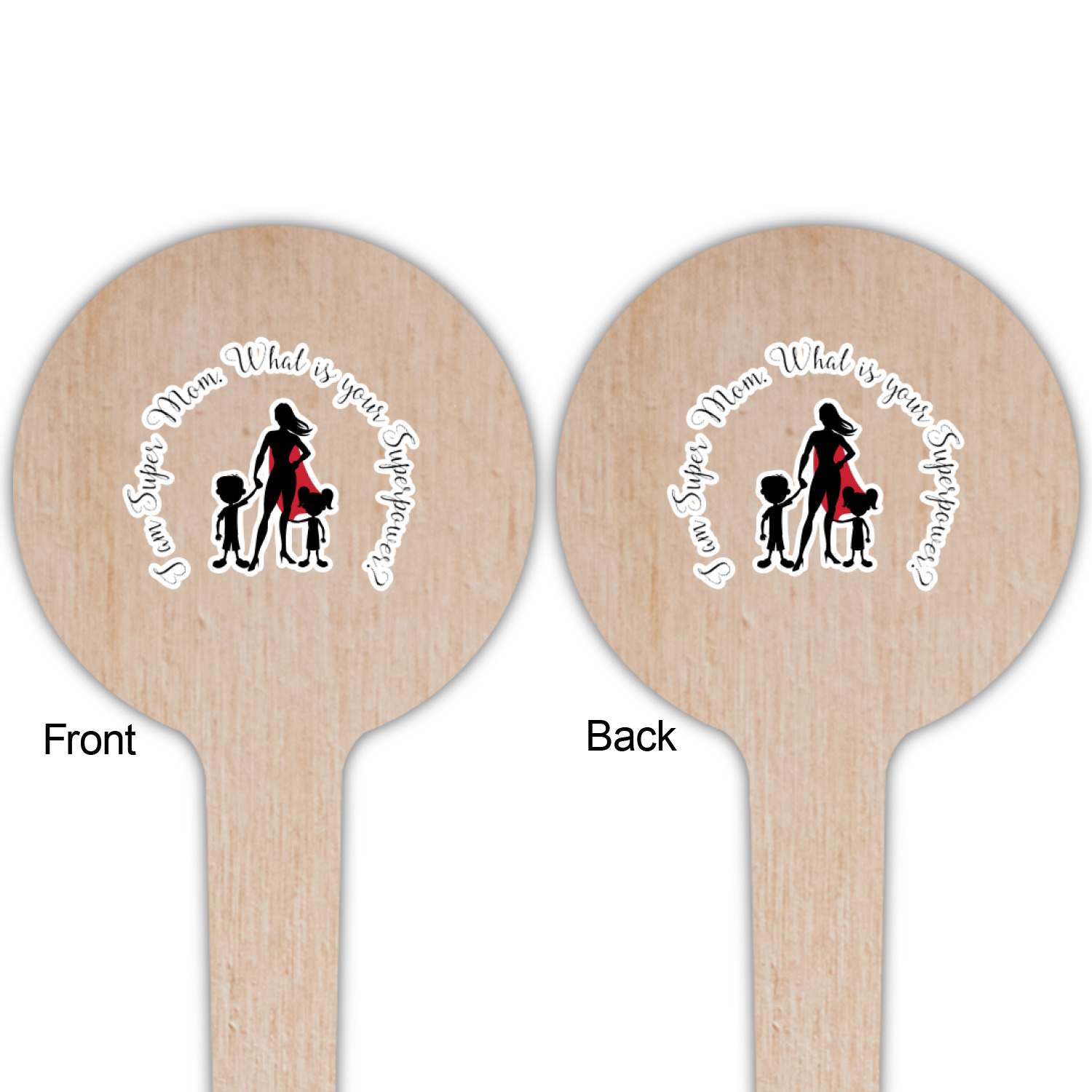 Our Super Mom design is perfect for your Mother's Day Gift. Moms today are truly super heroes with all that they have to balance. Our adorable design depicts a super hero mom / woman holding hands with a little boy and a little girl. Our super hero mom is wearing a red cape. We used a blush colored starburst with stars to highlight our beautiful mother. We personalized with our new circular text and used the words "I am a Super Mom. What is your Superpower?". We use a scripty girly font. We think the design looks outstanding!