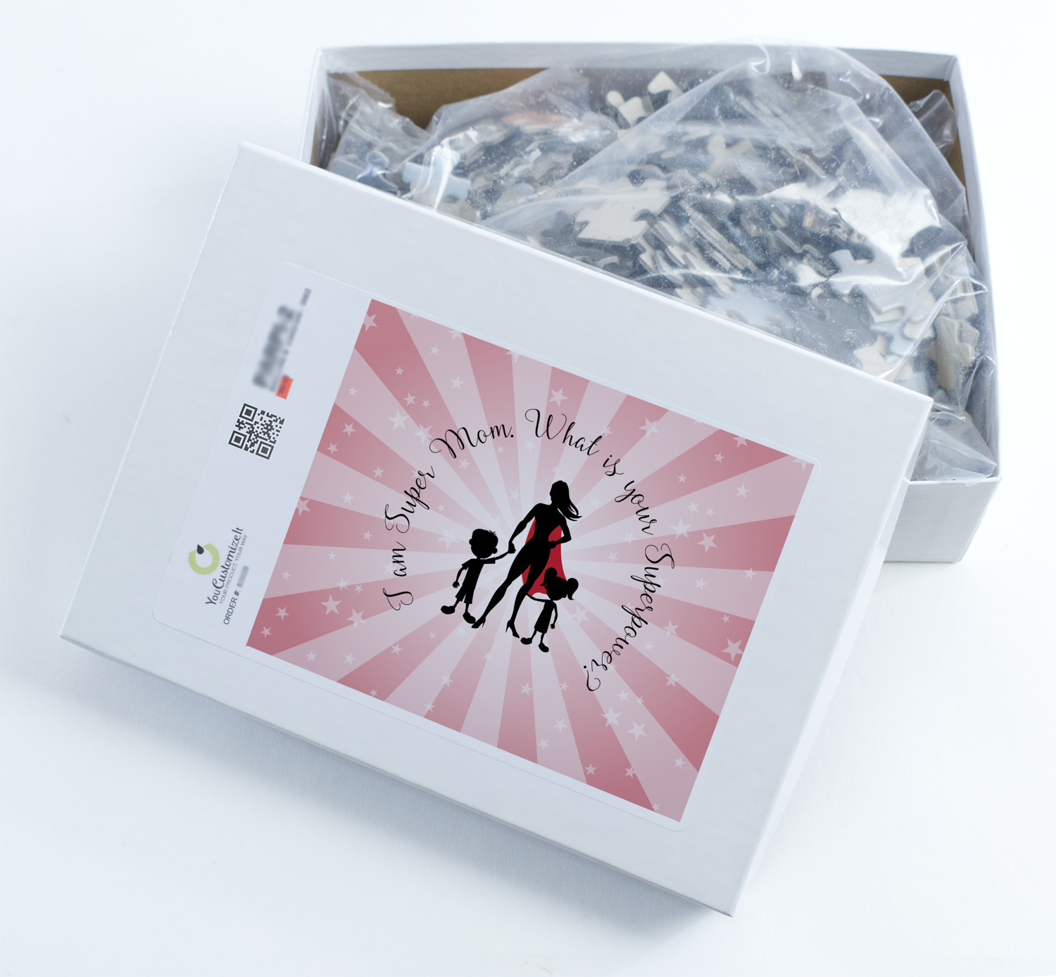 You can also upload your logo or art that you or your kids drew. To create more challenging jigsaw puzzles, you can create a pattern from with your logo or artwork. You can also add other elements such as text or personalization.