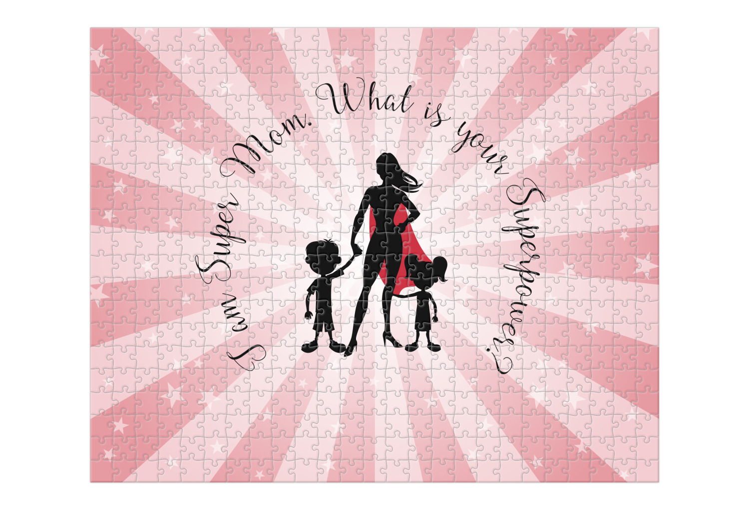 Our Super Mom design is perfect for your Mother's Day Gift. Moms today are truly super heroes with all that they have to balance. Our adorable design depicts a super hero mom / woman holding hands with a little boy and a little girl. Our super hero mom is wearing a red cape. We used a blush colored starburst with stars to highlight our beautiful mother. We personalized with our new circular text and used the words "I am a Super Mom. What is your Superpower?". We use a scripty girly font. We think the design looks outstanding!