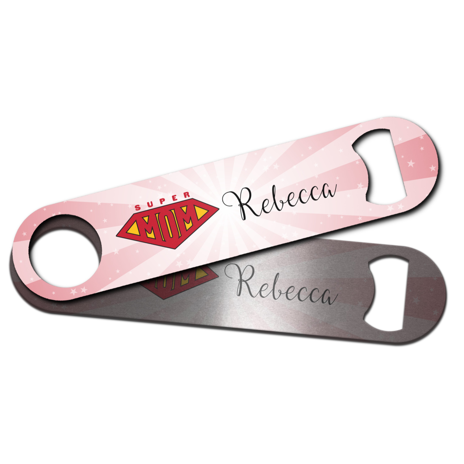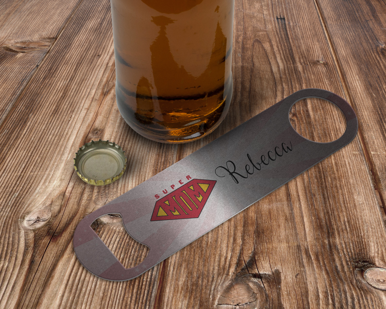 Stop struggling with the caps or your bottled beverages by purchasing one of our personalized bottle openers! These wrench-like custom bar blades are built to last. Customize one for your home's bar, or as a practical gift for a loved one!