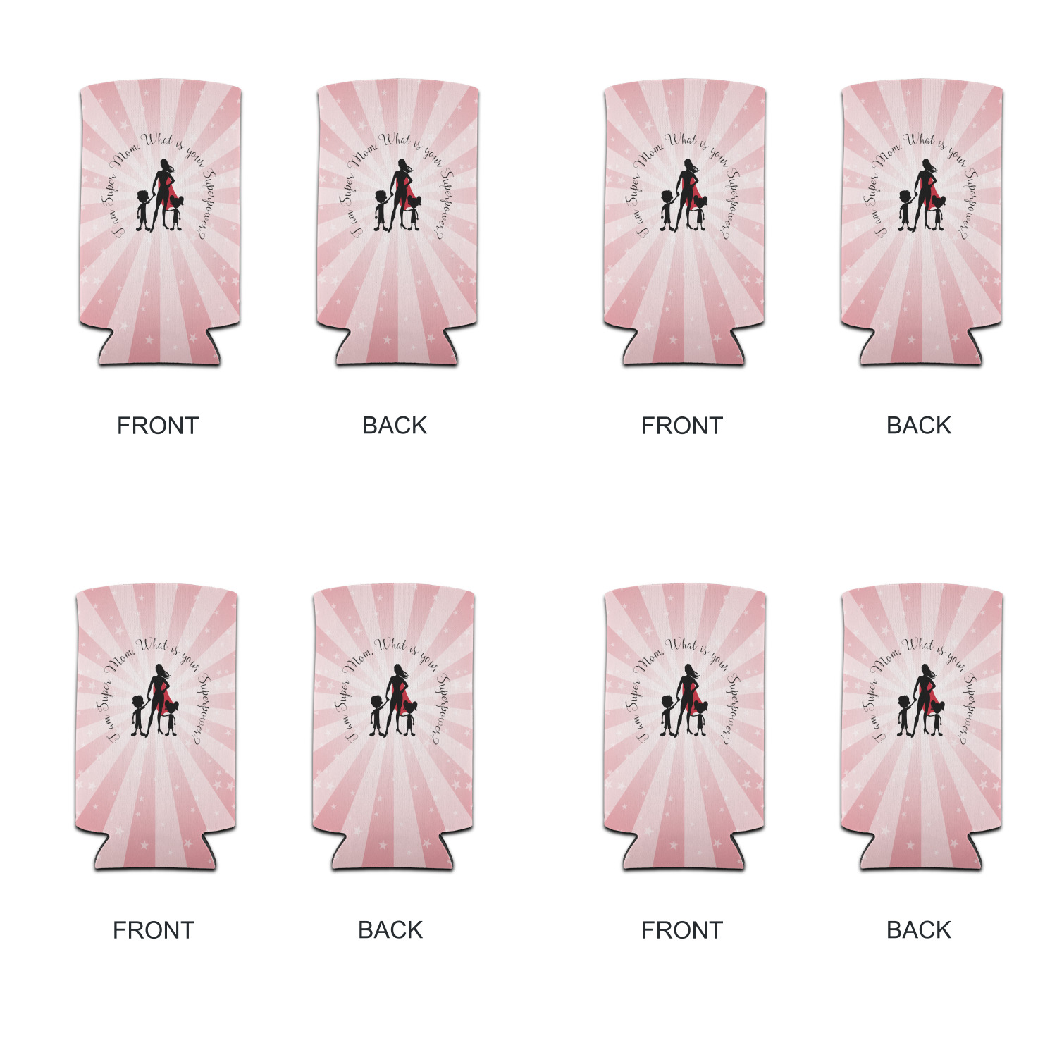 Our Super Mom design is perfect for your Mother's Day Gift. Moms today are truly super heroes with all that they have to balance. Our adorable design depicts a super hero mom / woman holding hands with a little boy and a little girl. Our super hero mom is wearing a red cape. We used a blush colored starburst with stars to highlight our beautiful mother. We personalized with our new circular text and used the words "I am a Super Mom. What is your Superpower?". We use a scripty girly font. We think the design looks outstanding!