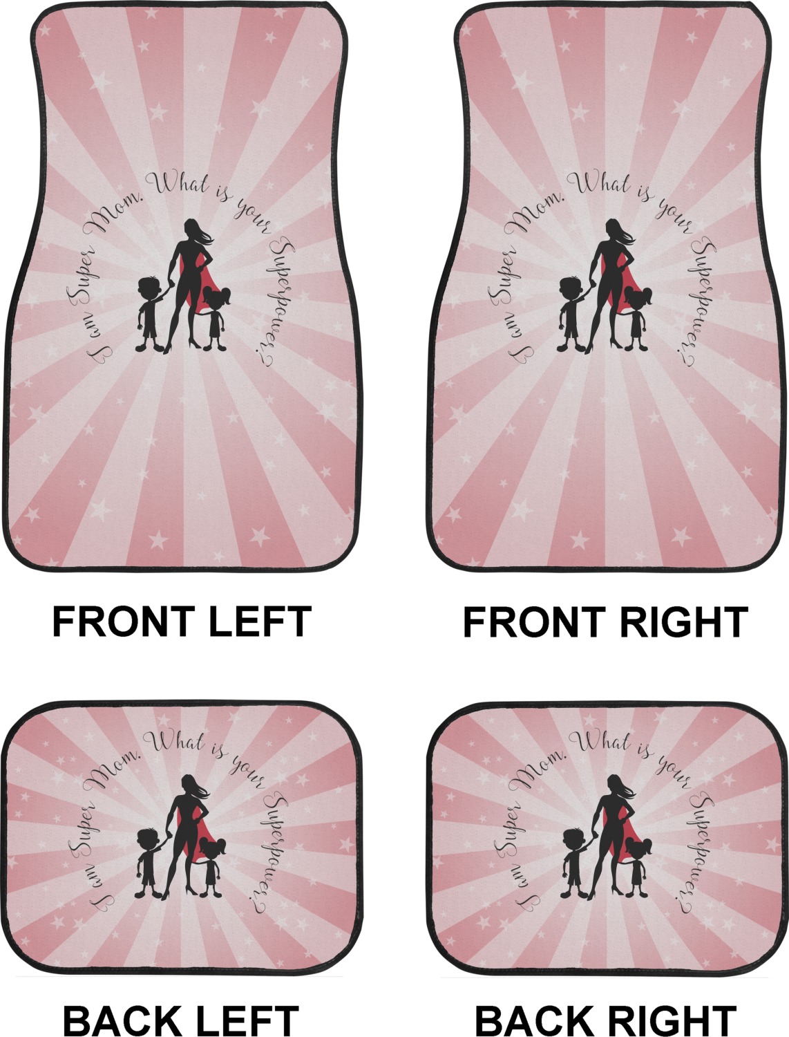 We craft our auto floor mats mats from polyester, apply a black finish to the edges, and lined at the bottom to prevent slippage. These mats protect your floors from grass, mud, and any accidental spills. We display your personalized design on the front face of each mat. The sizes of these car floor liners are standardized to provide a versatile fit for all vehicles. The front rows car mats measure at 17 by 26.5 inches, while the back rows measure at 17 by 13 inches. We sell three packages of car floor mats. You can purchase a pair of front row car mats, a pair of back row car mats, or a set of front row and back row car mats. To make an informed purchase, we recommend measuring the surface area of your car floors.